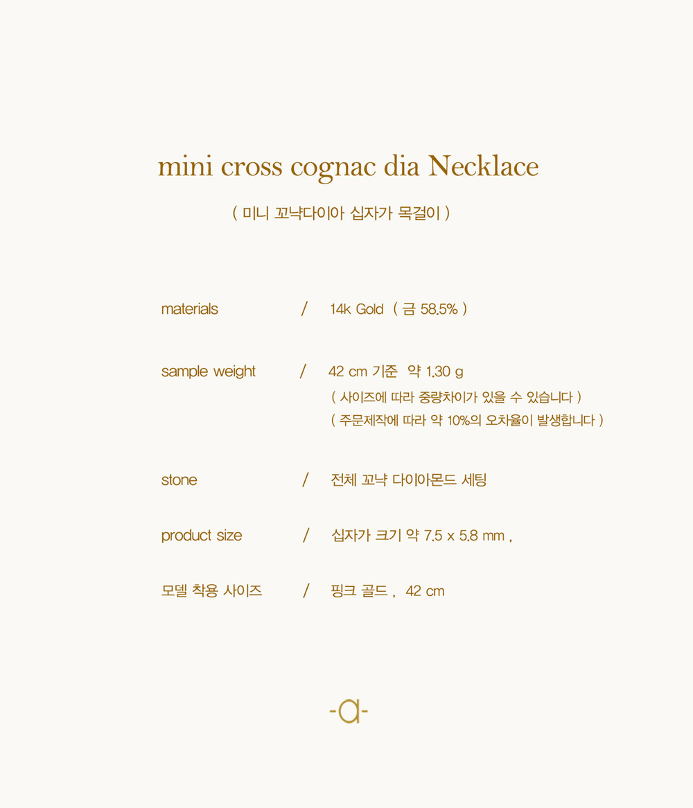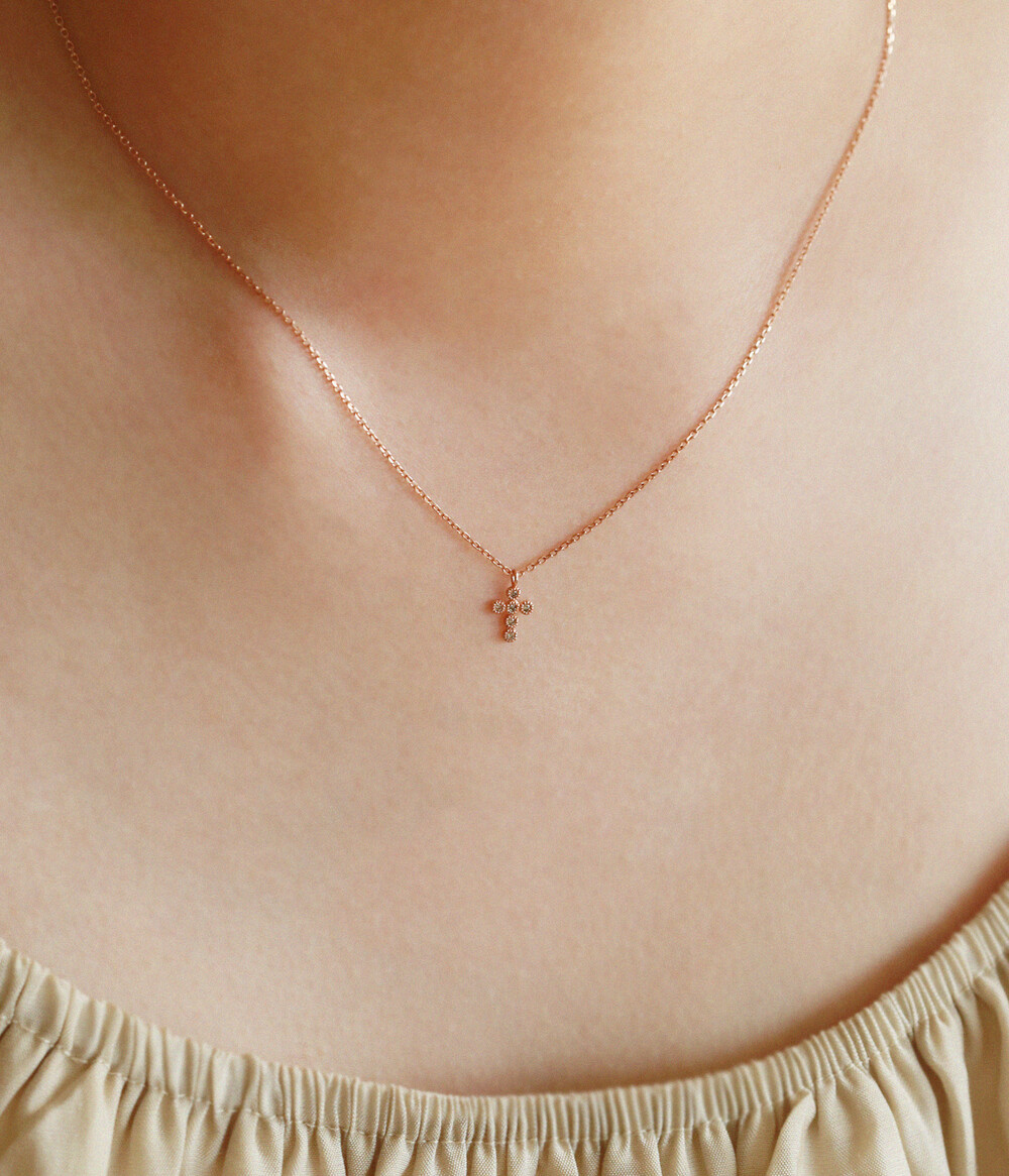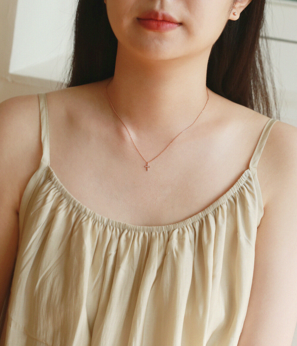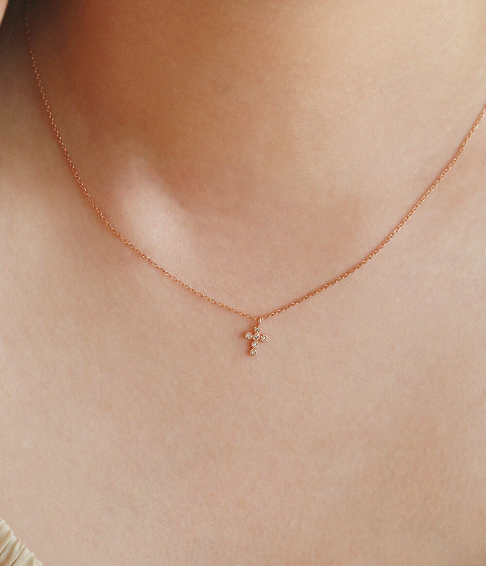 꼬냑다이아몬드가 세팅된 미니 십자가 목걸이