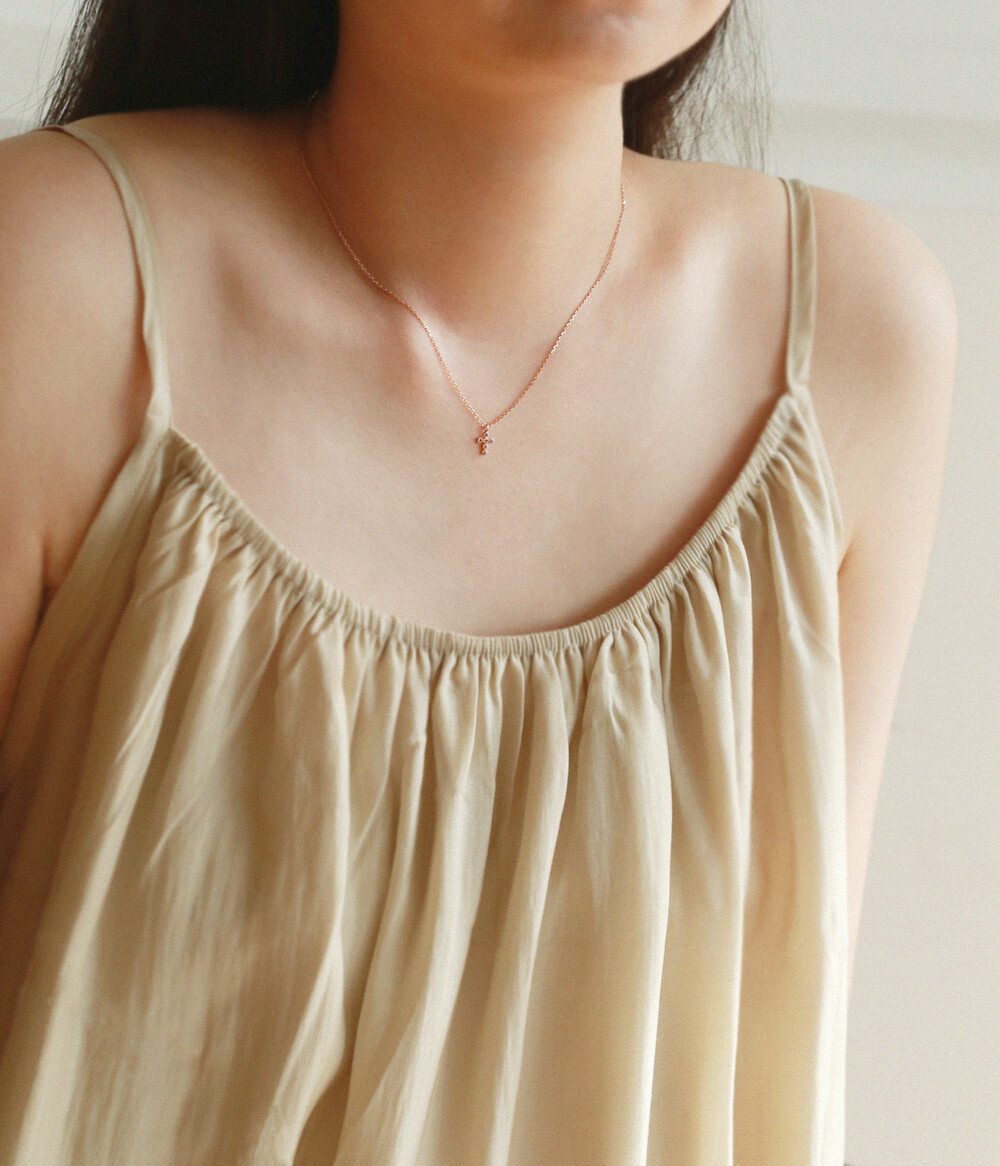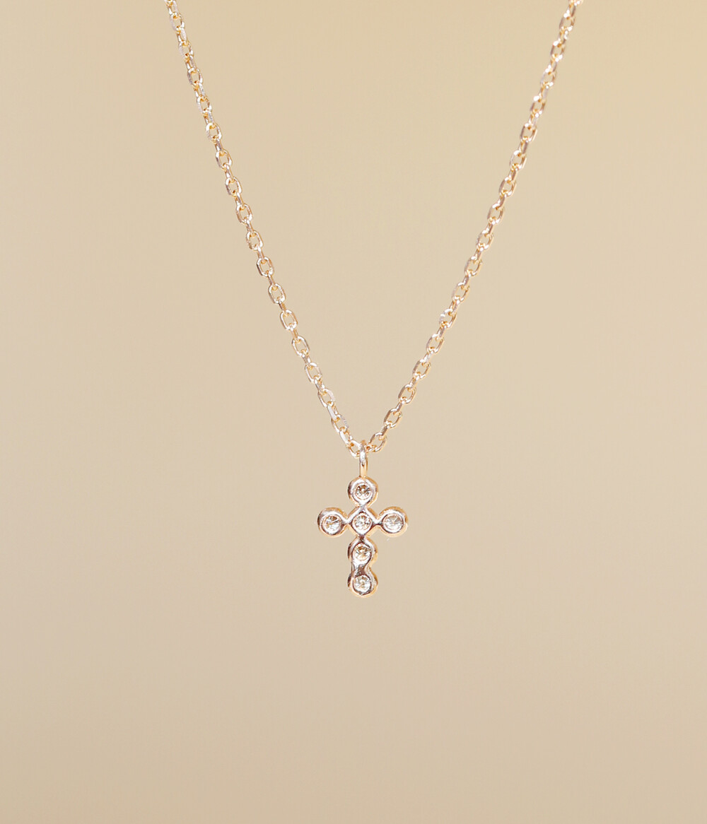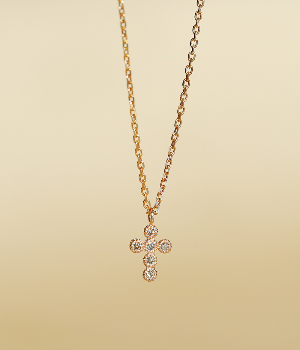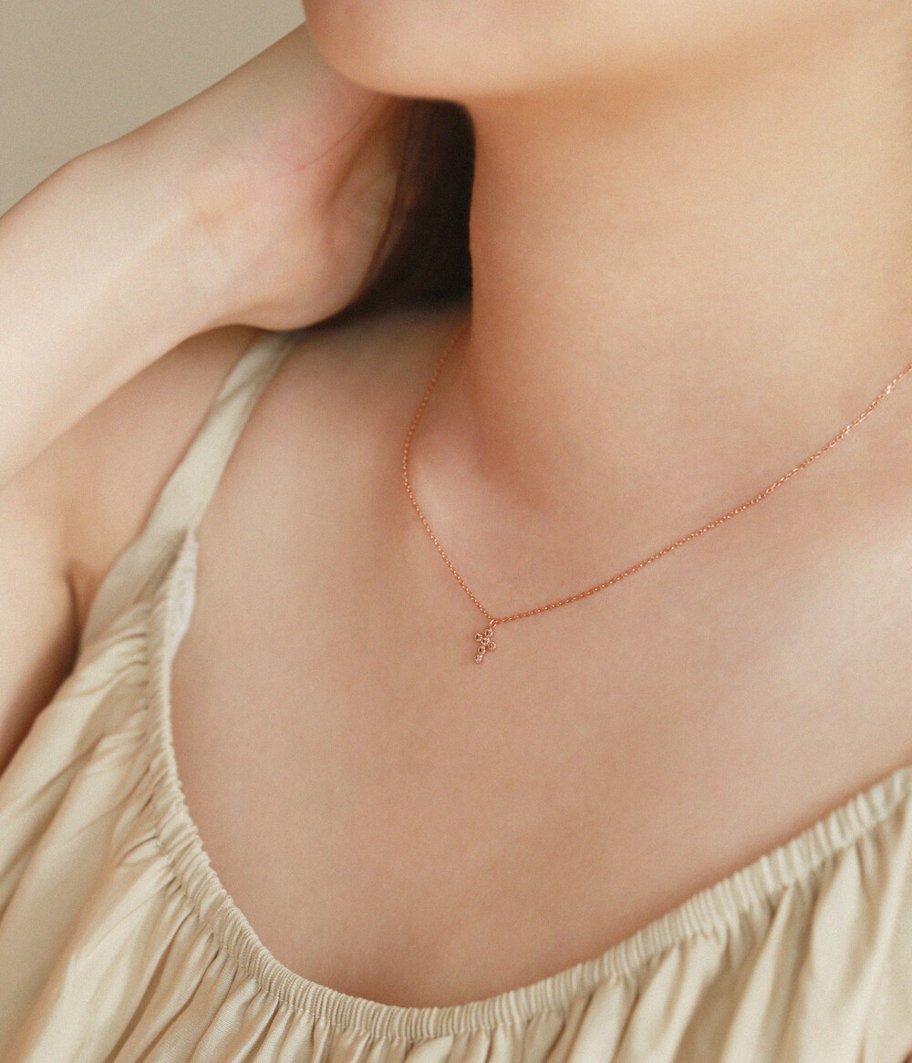 꼬냑다이아몬드가 세팅된 미니 십자가 목걸이