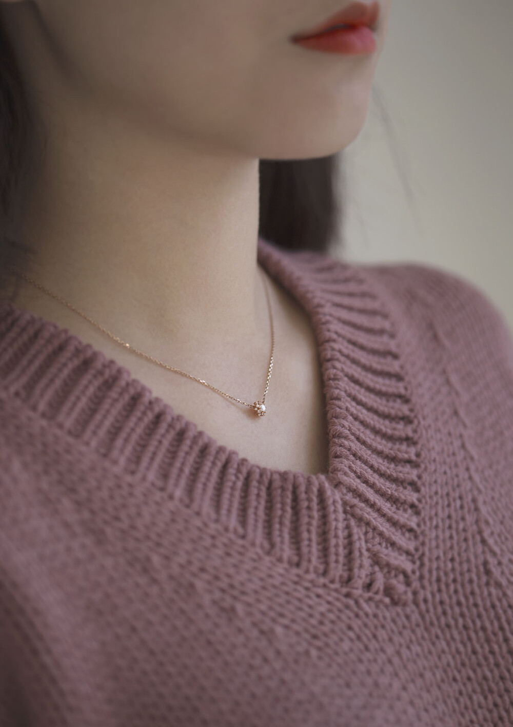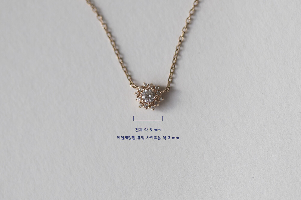 14k / 핑크골드 / 모델착용사이즈 42cm / 샘플 중량 : 1.68 g / 3푼스퀘어체인 / 시그니티큐빅 세팅