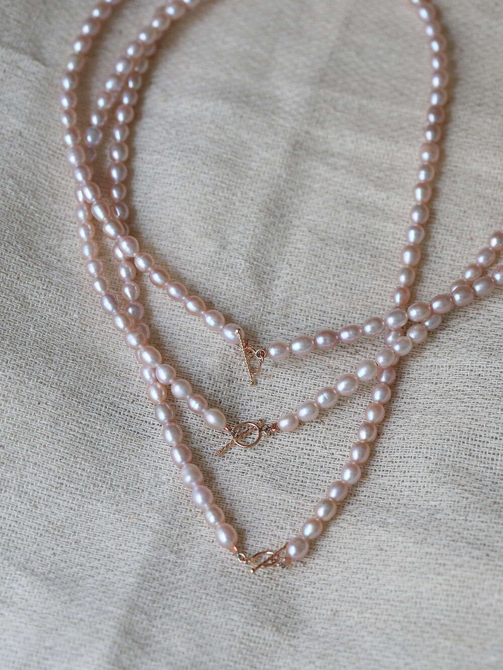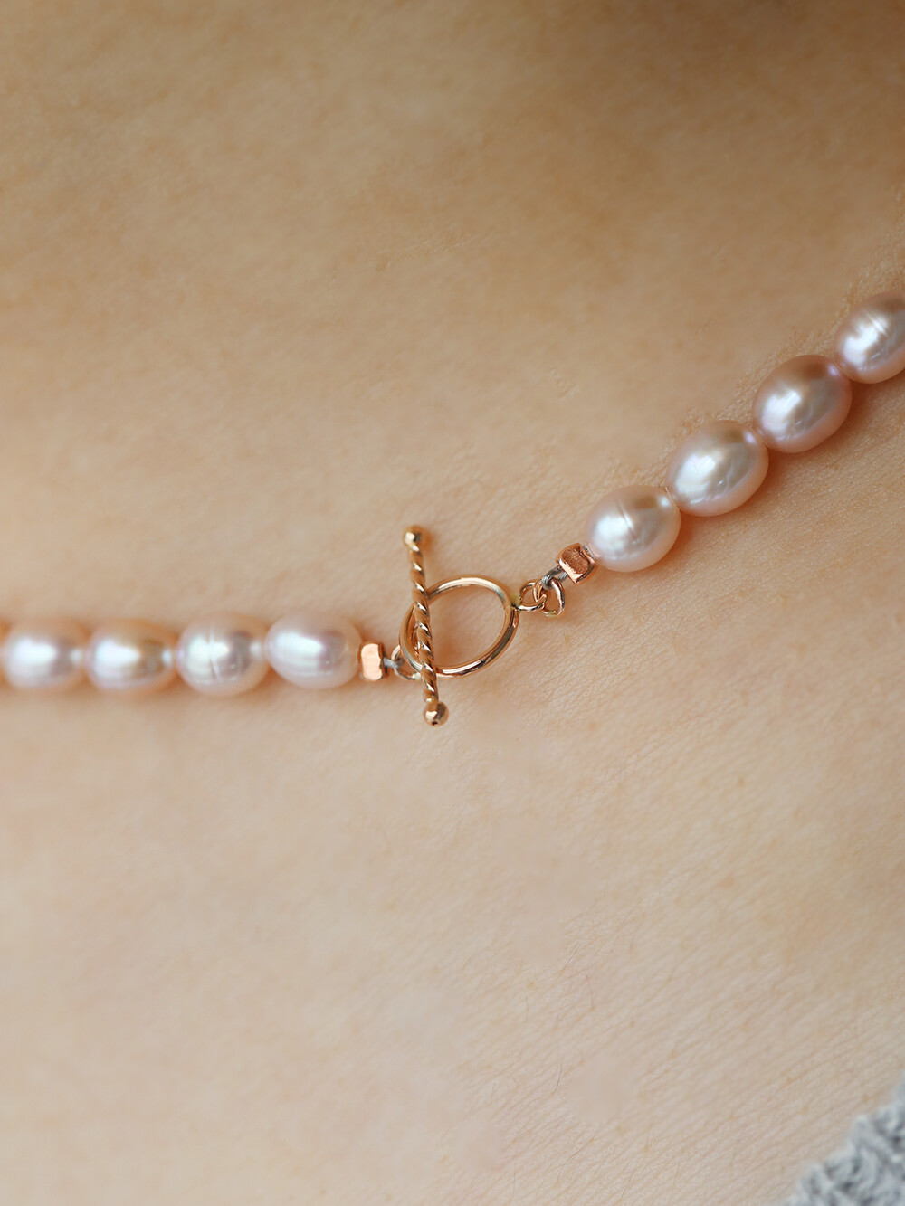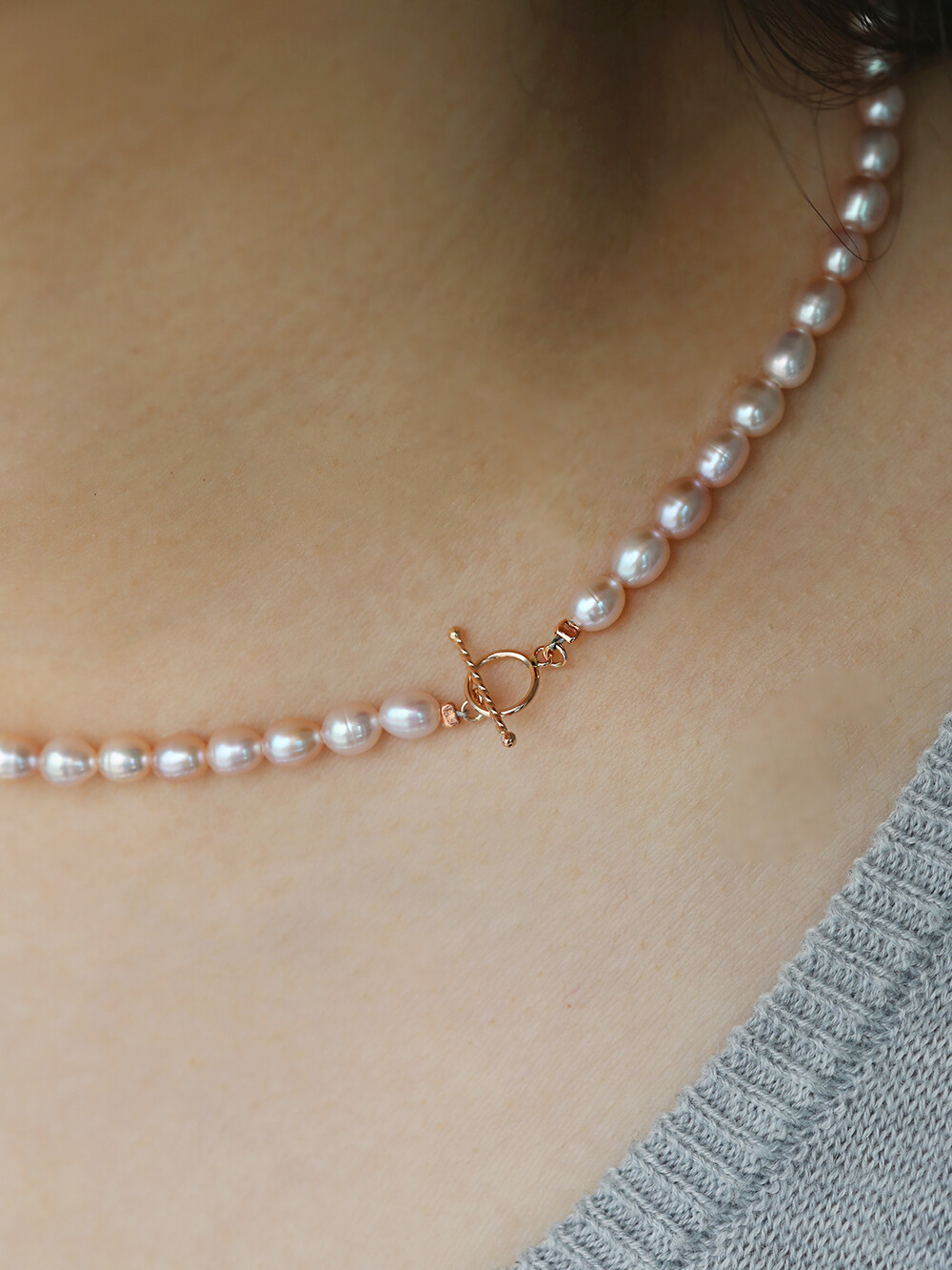 Lavender Orange Pearl bead necklace (토글장식)