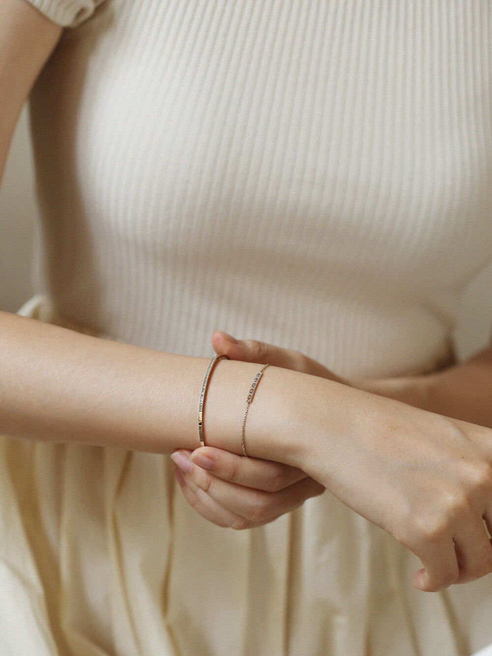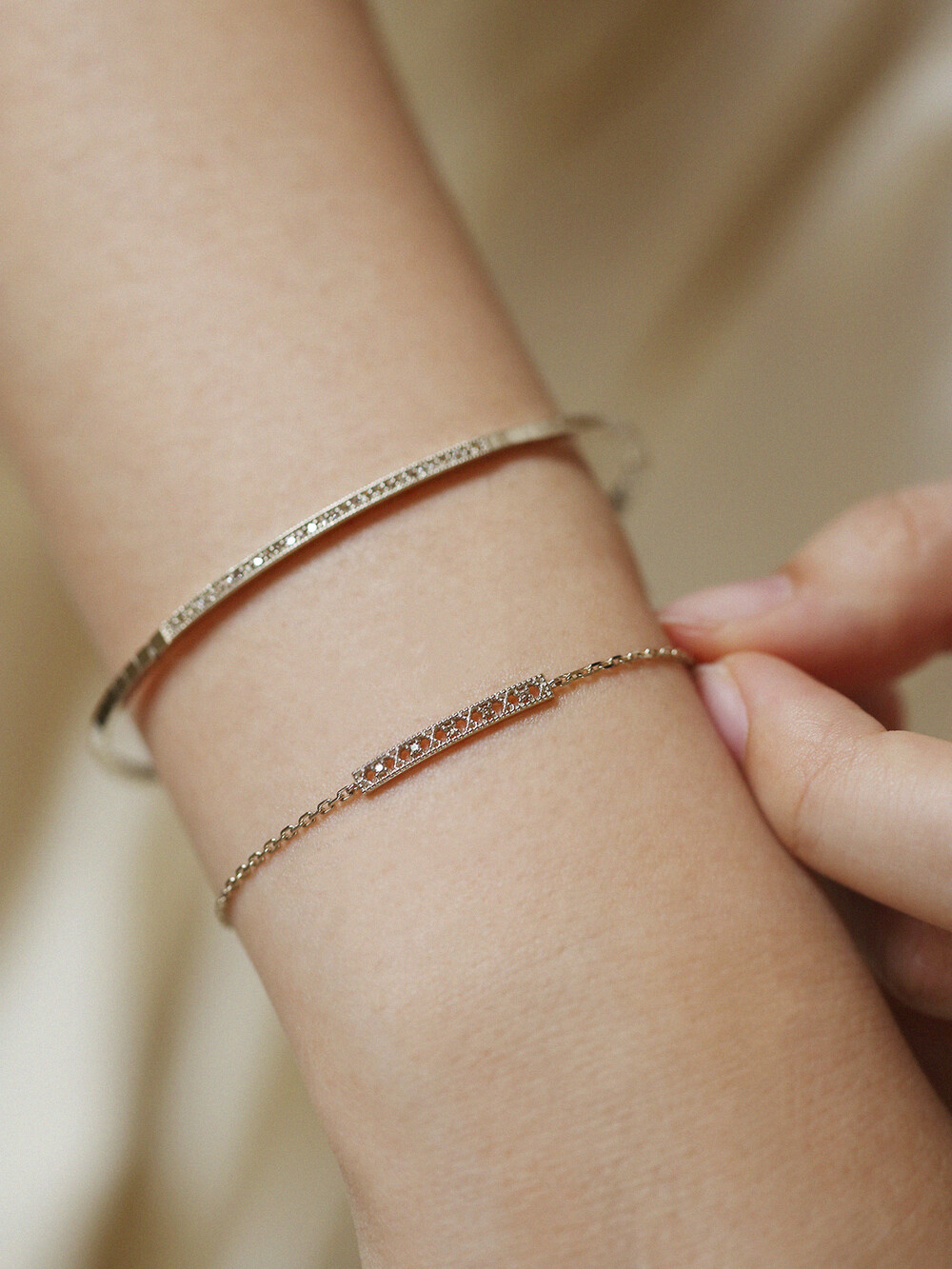 천연꼬냑다이아몬드가 세팅된 여성스러운 무드의 팔찌