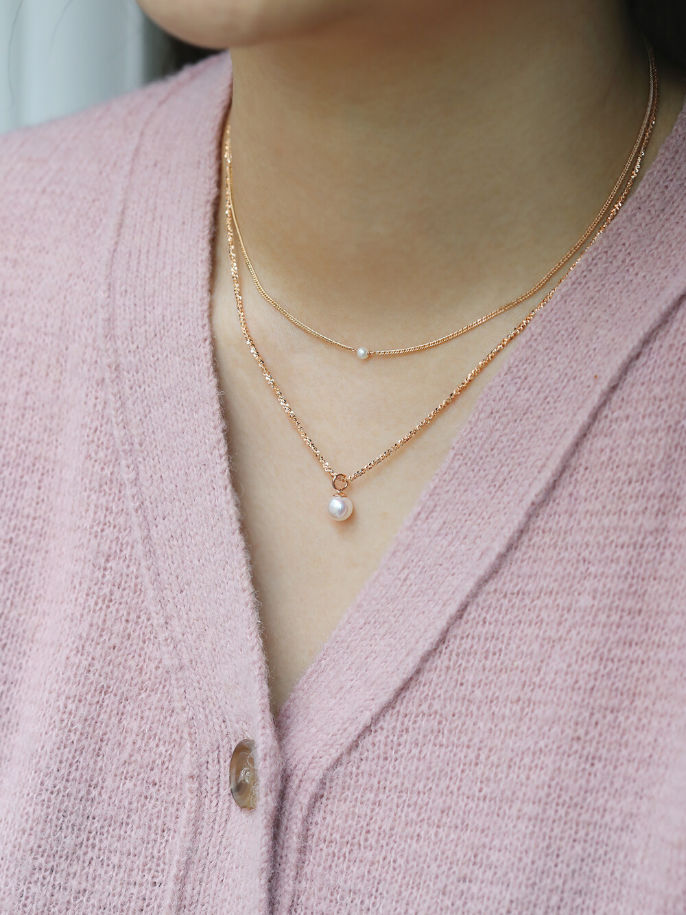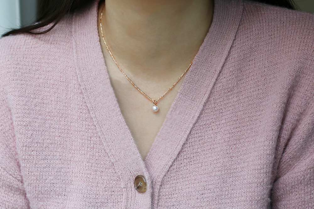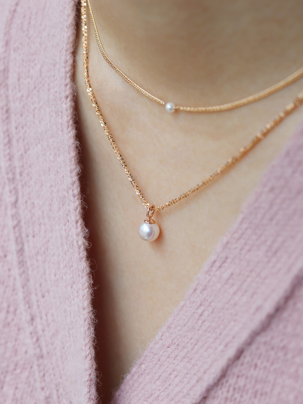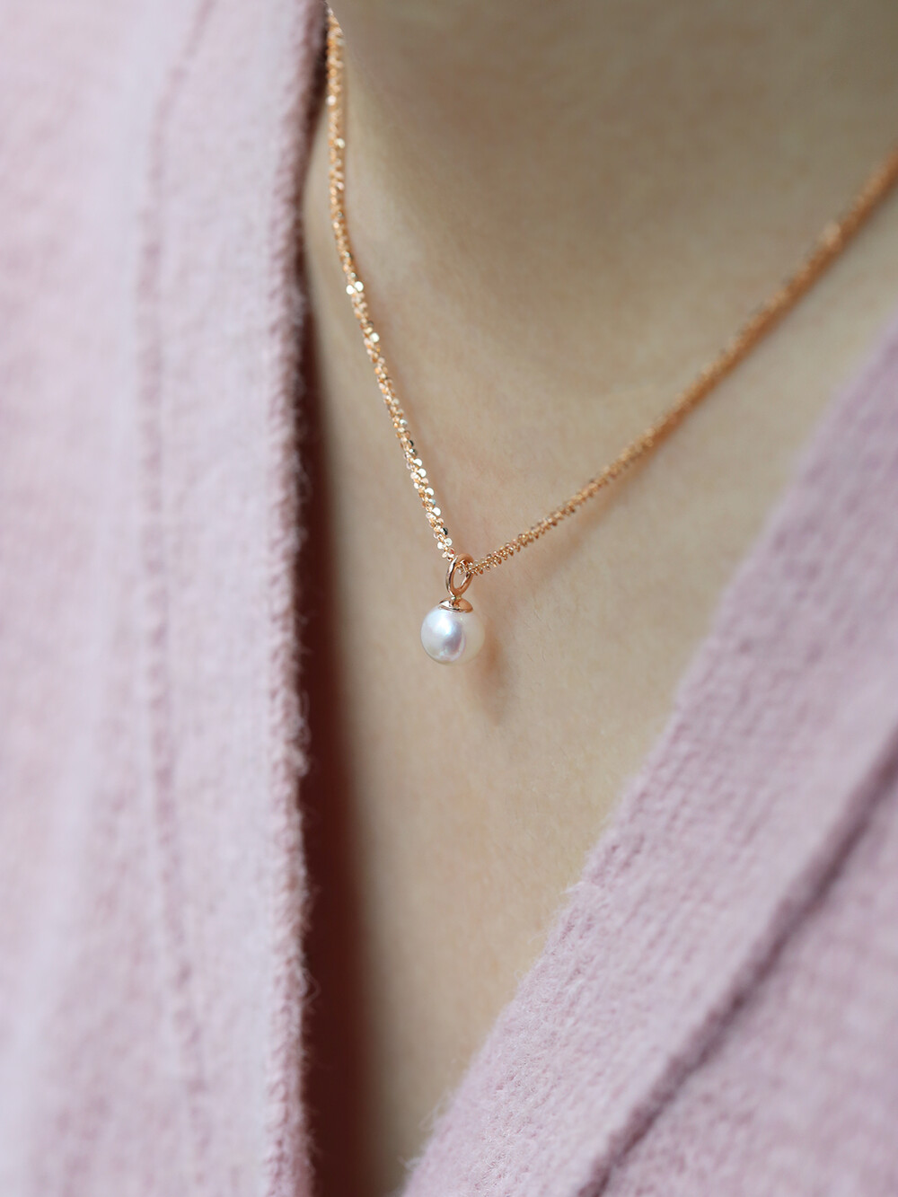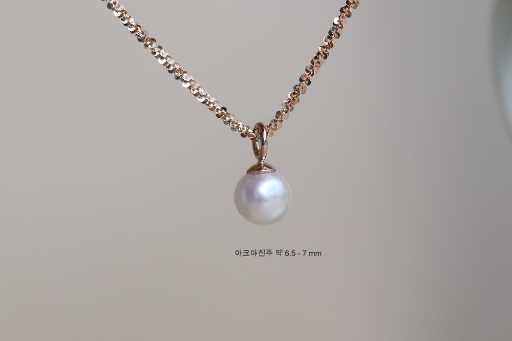 14k / 핑크골드 / 모델 착용 사이즈 : 42cm / 샘플 중량 : 2.20g / 아코야진주 세팅