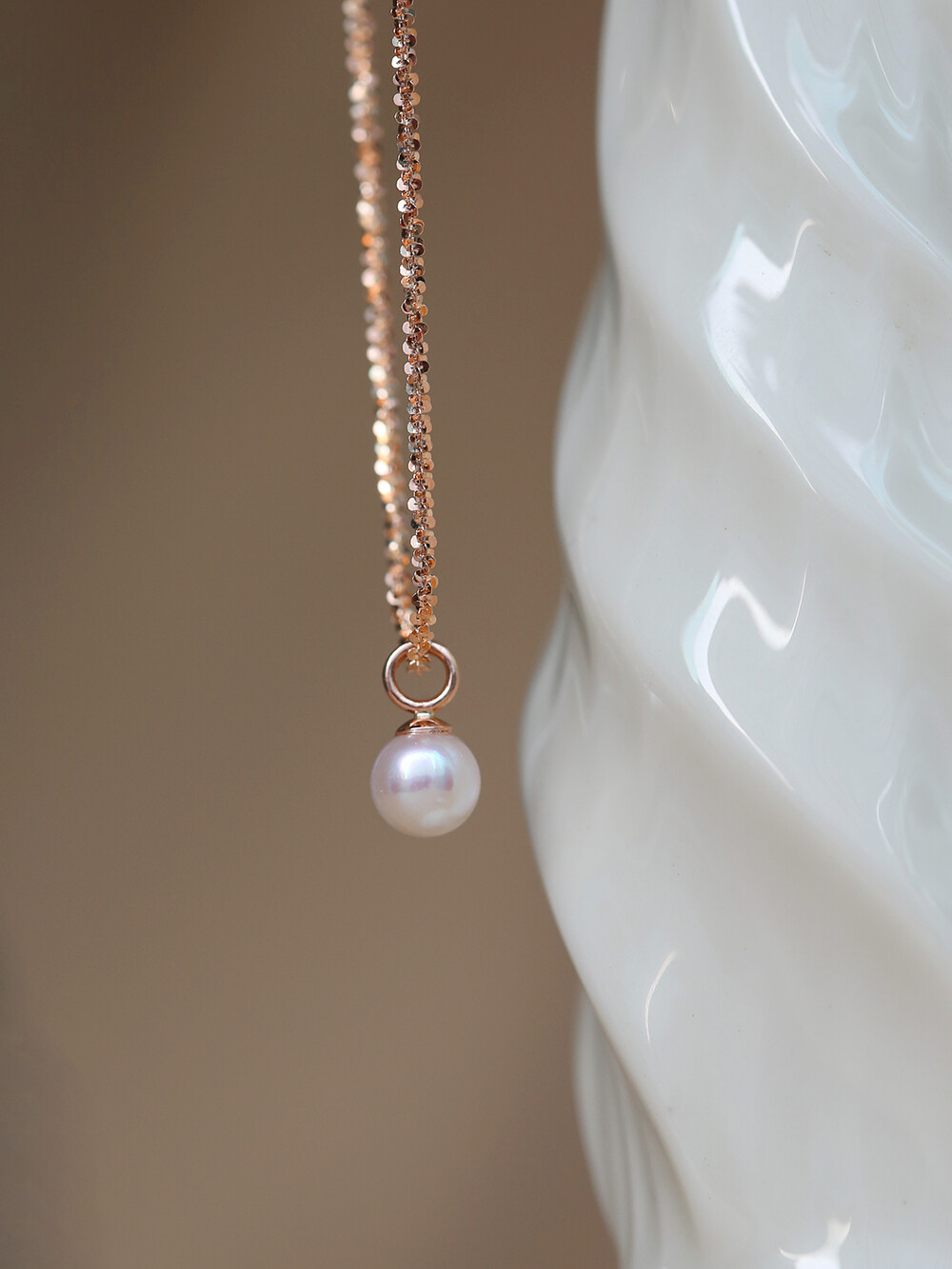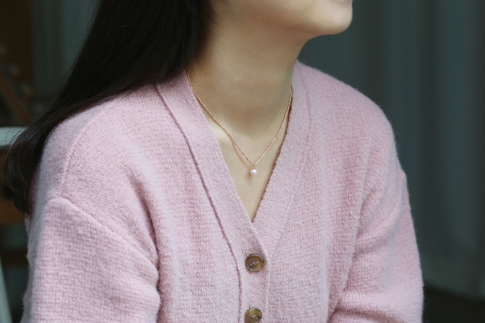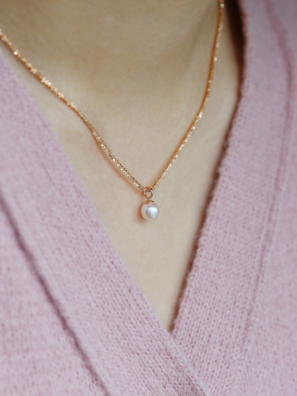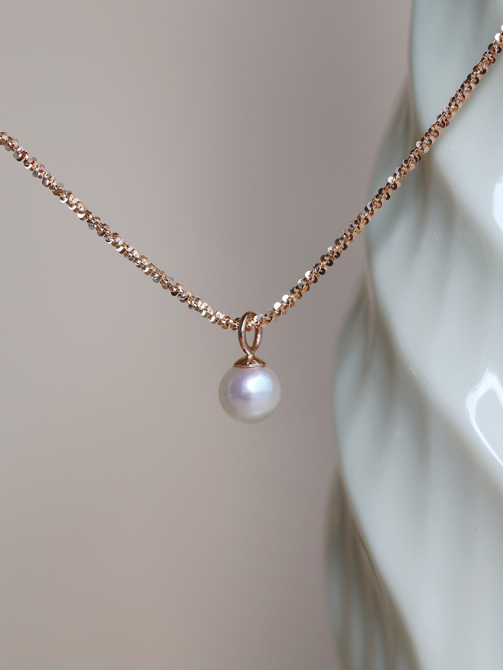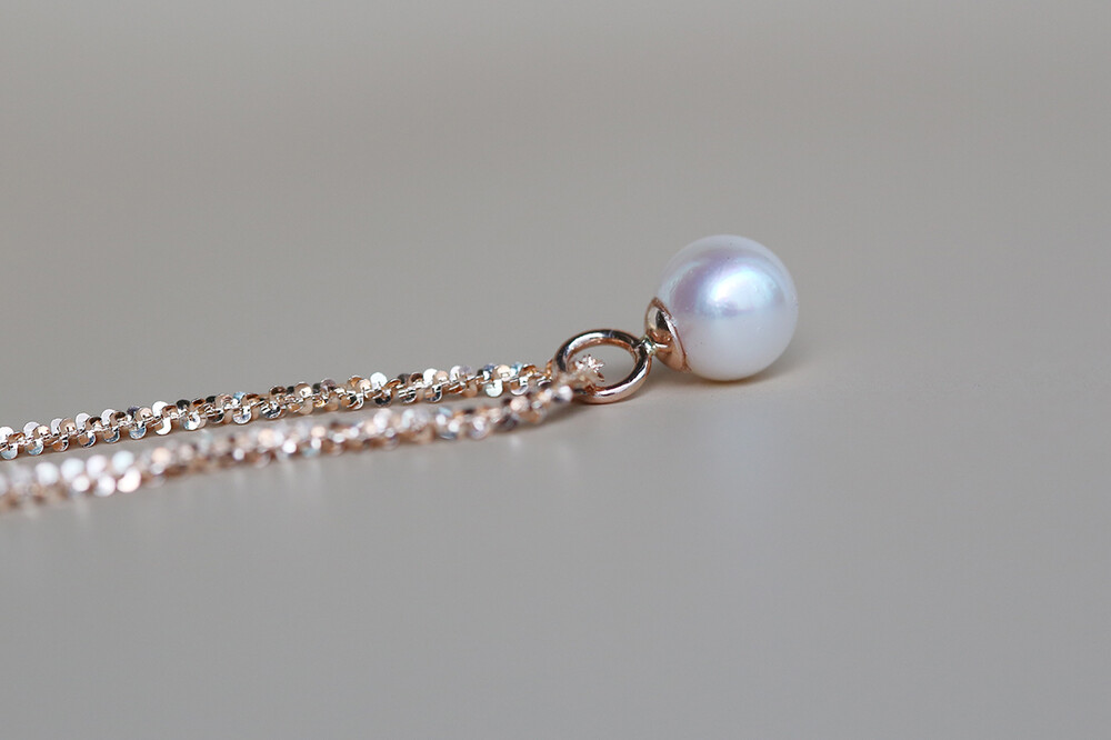 14k / 핑크골드 / 모델 착용 사이즈 : 42cm / 샘플 중량 : 2.20g / 아코야진주 세팅