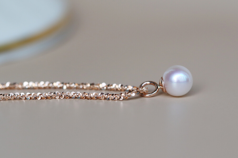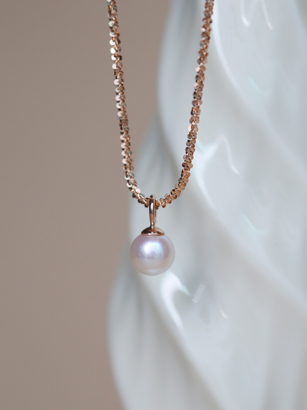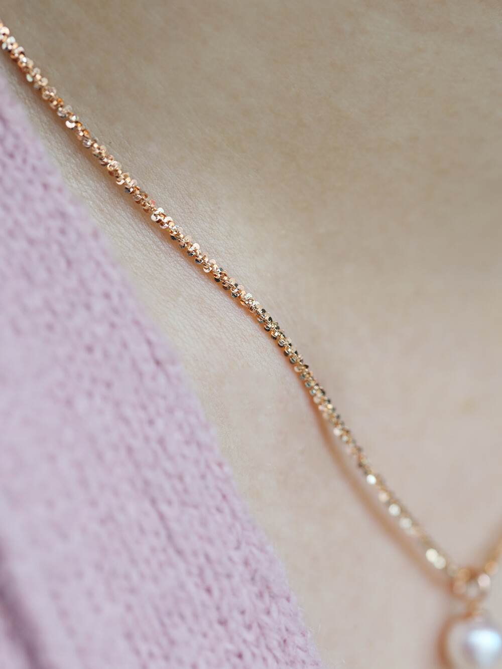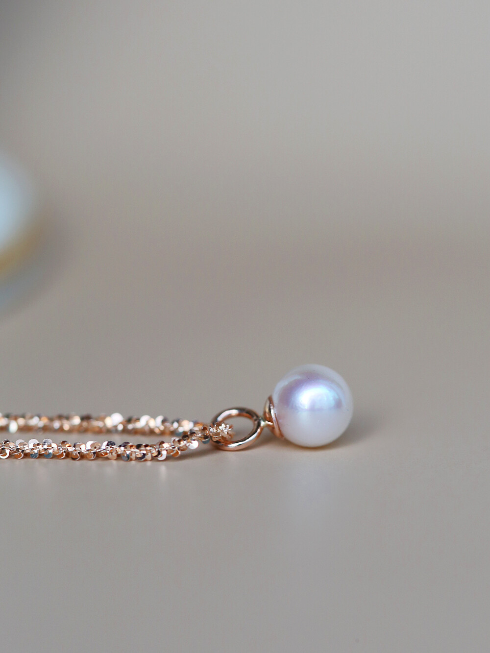 14k / 핑크골드 / 모델 착용 사이즈 : 42cm / 샘플 중량 : 2.20g / 아코야진주 세팅