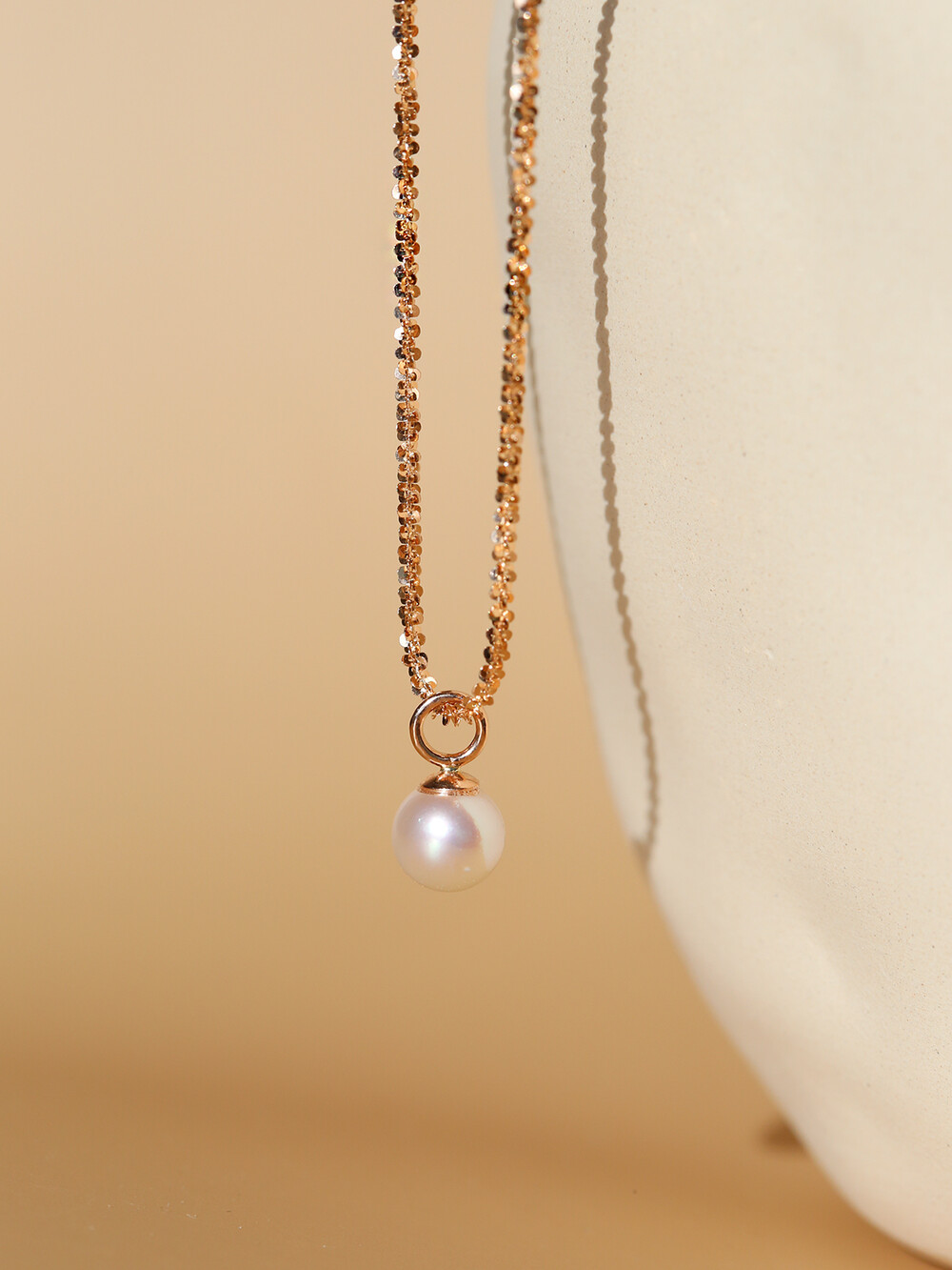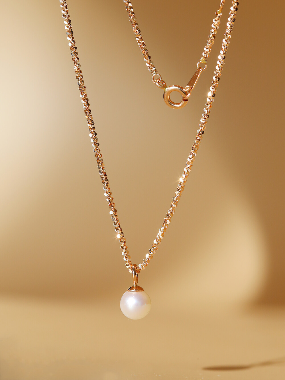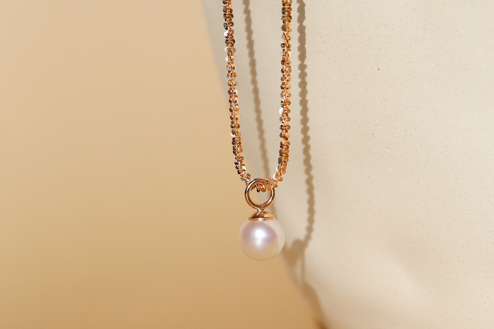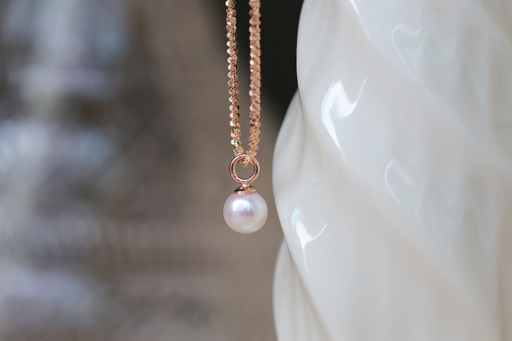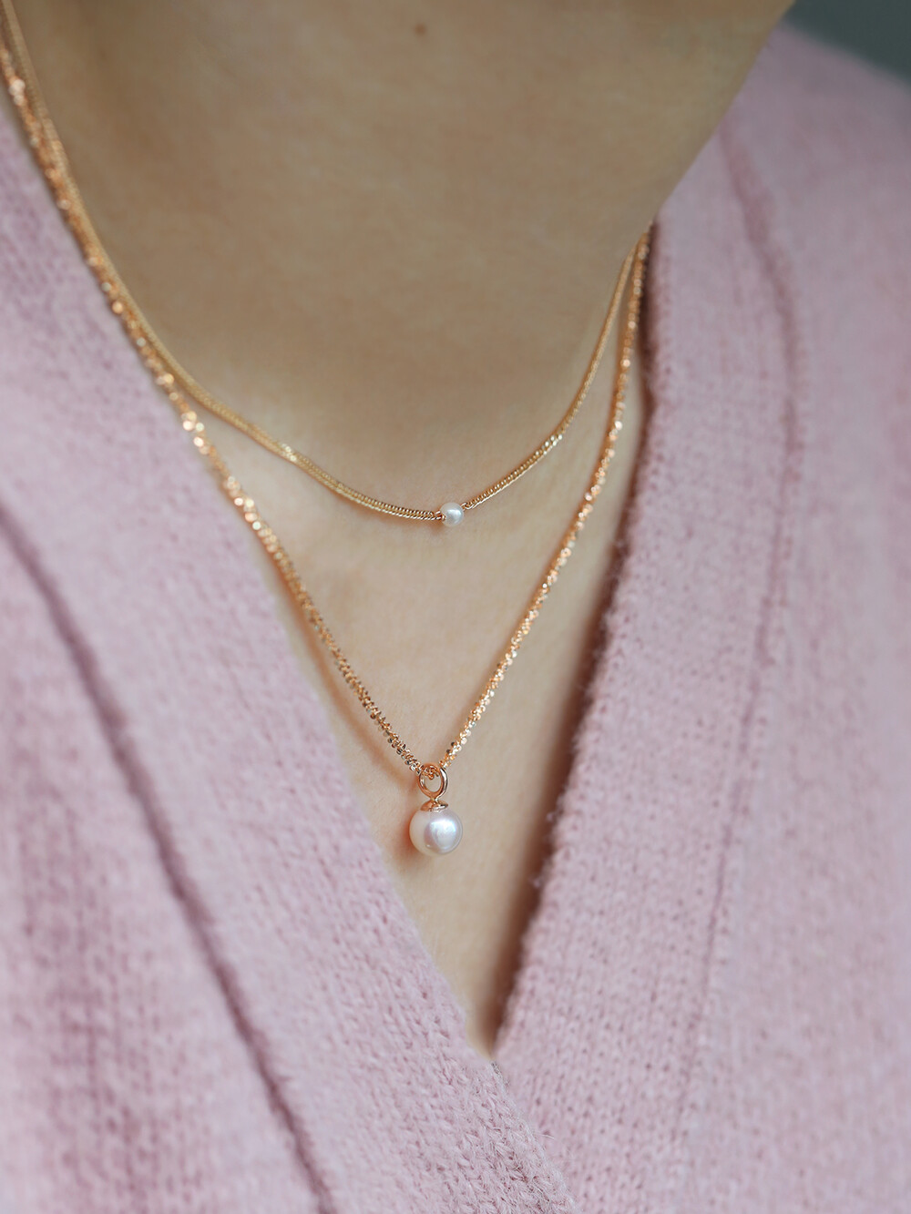 14k / 핑크골드 / 모델 착용 사이즈 : 42cm / 샘플 중량 : 2.20g / 아코야진주 세팅