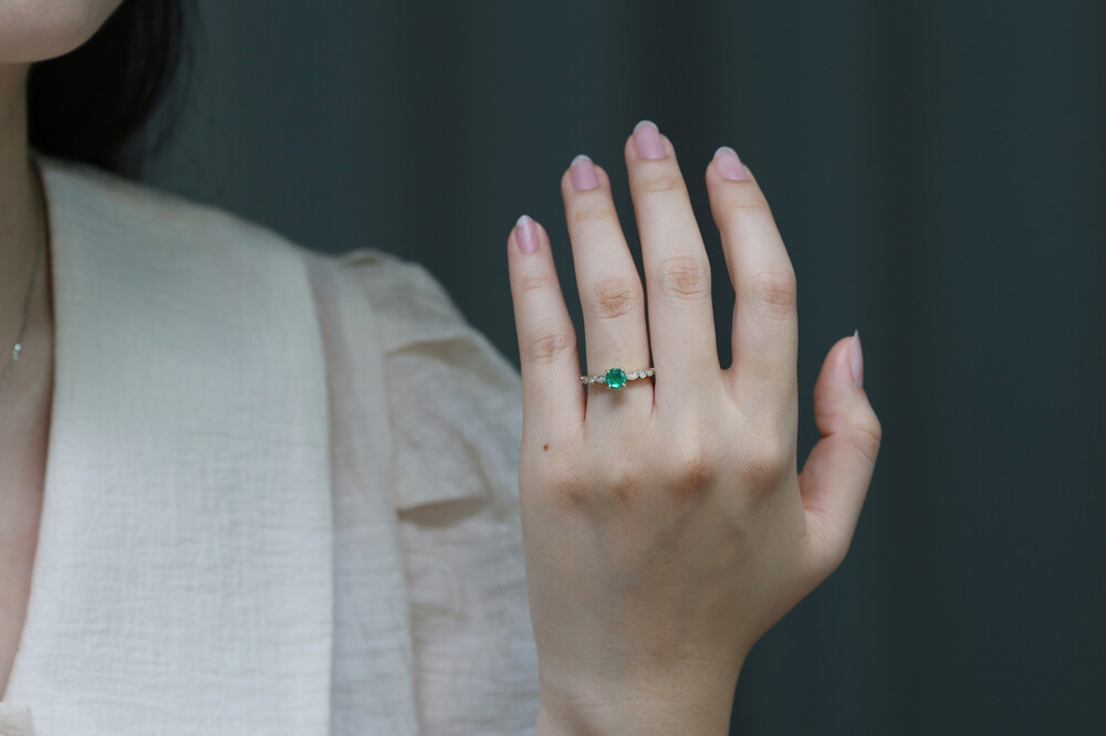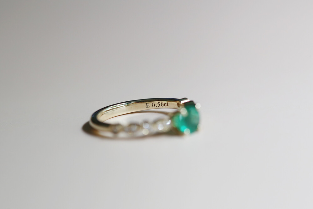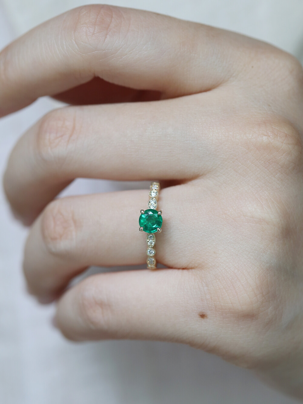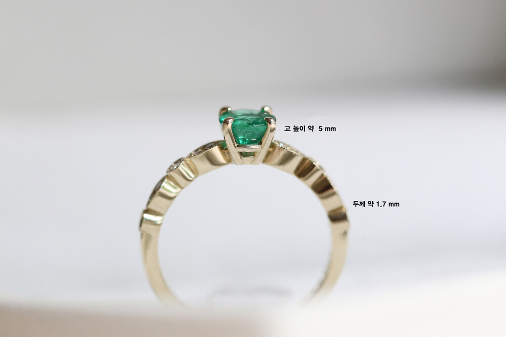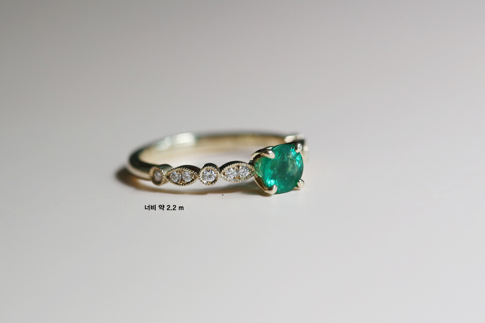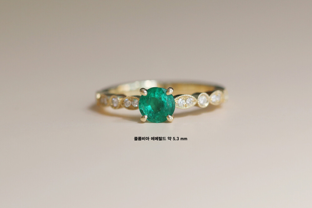 라운드 컷의 0.56 ct 콜롬비아 에메랄드가 메인으로 세팅된