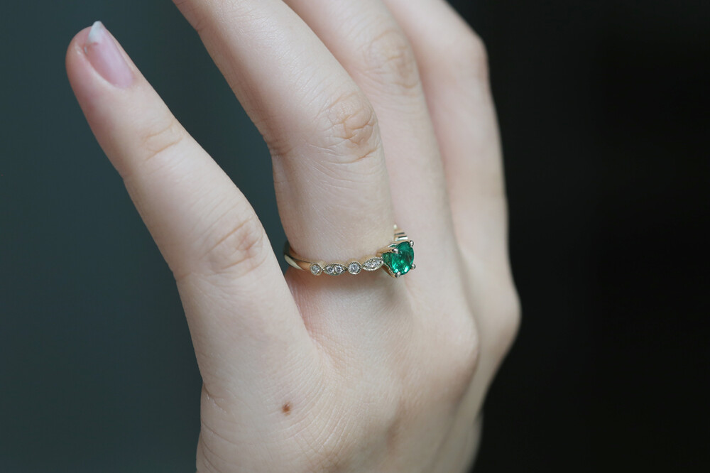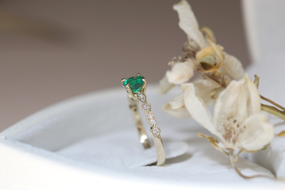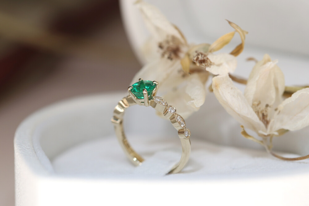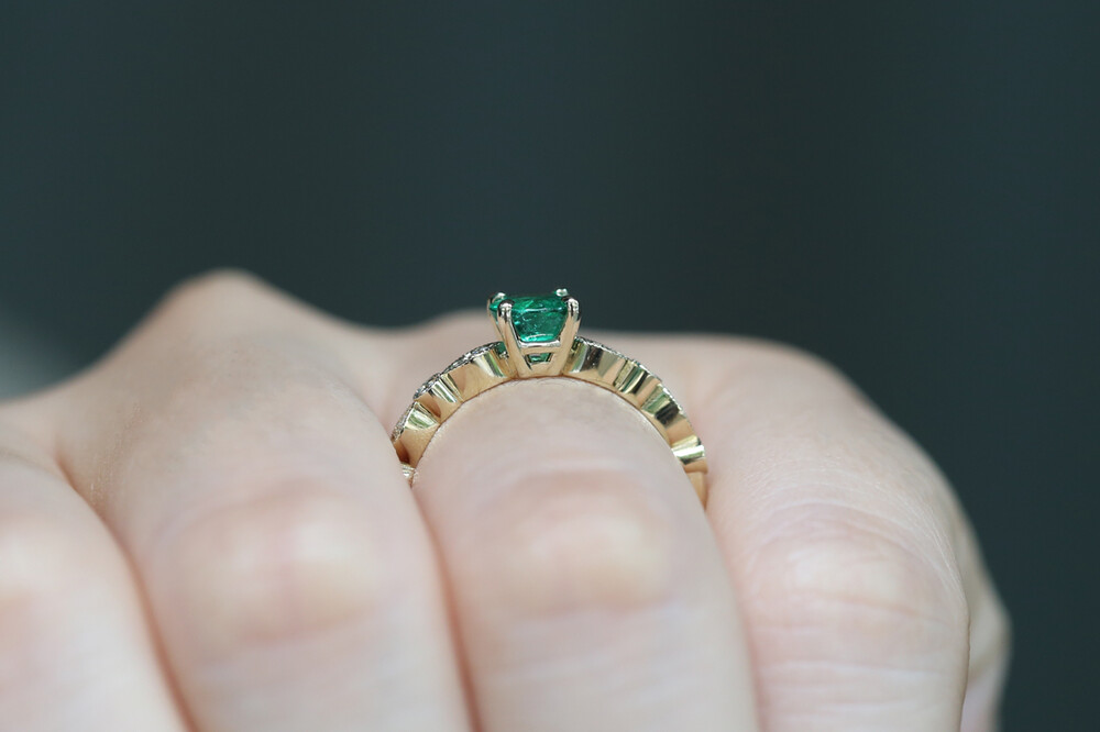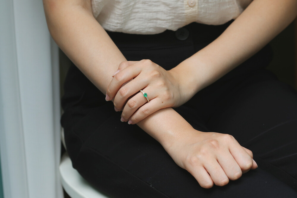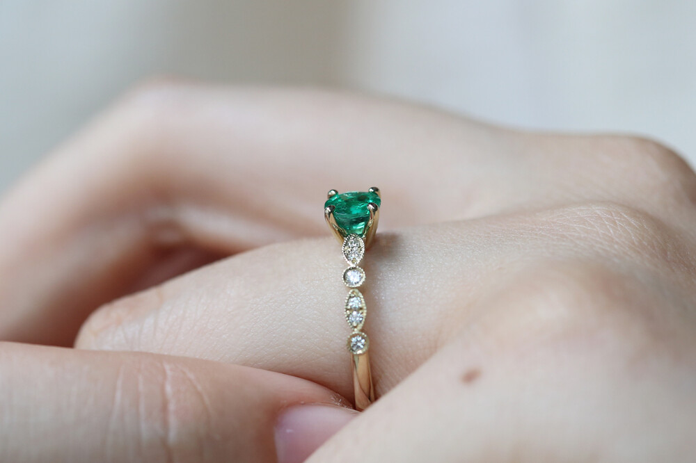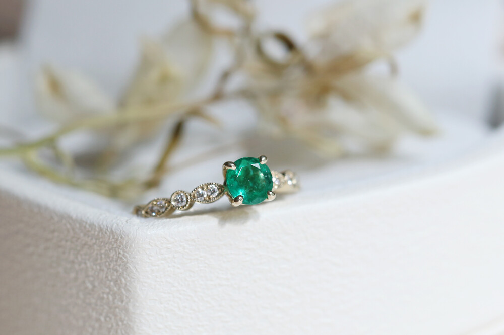 라운드 컷의 0.56 ct 콜롬비아 에메랄드가 메인으로 세팅된