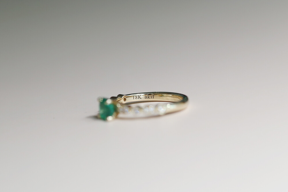 라운드컷 에메랄드를 메인으로 기본 4프롱 디자인으로 깔끔하게 마무리했구요,