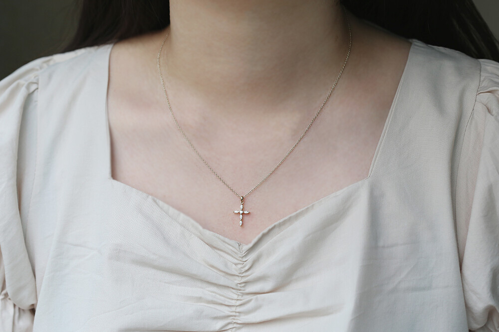 전체 다이아몬드가 세팅된 고급스러운 십자가 목걸이랍니다