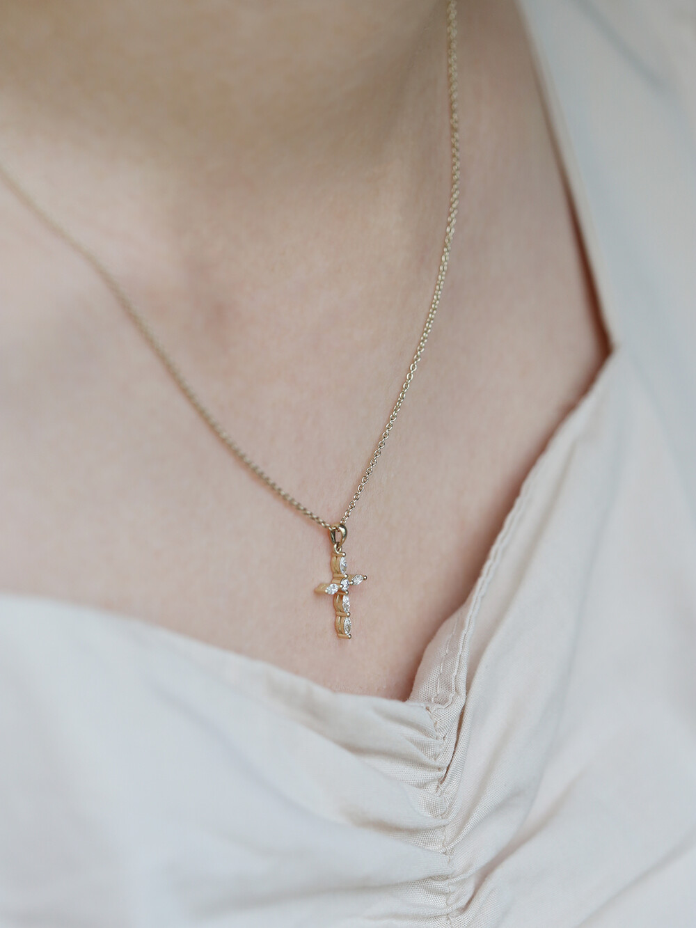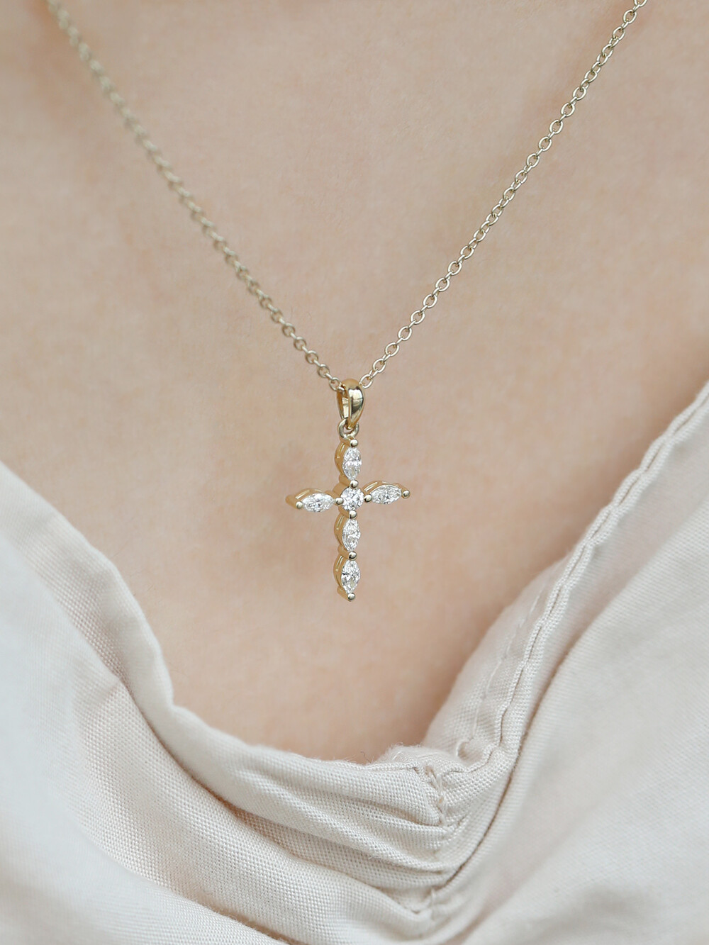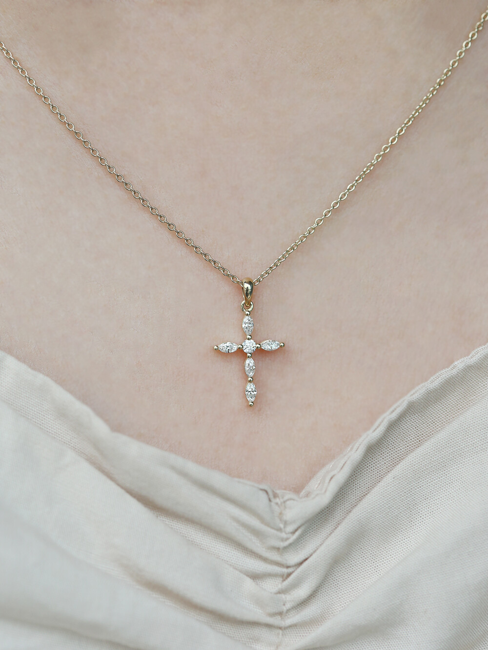 마퀴즈컷 다이아몬드를 활용한 십자가 디자인은