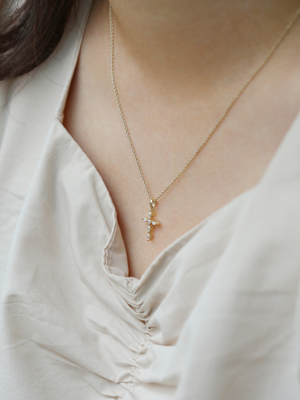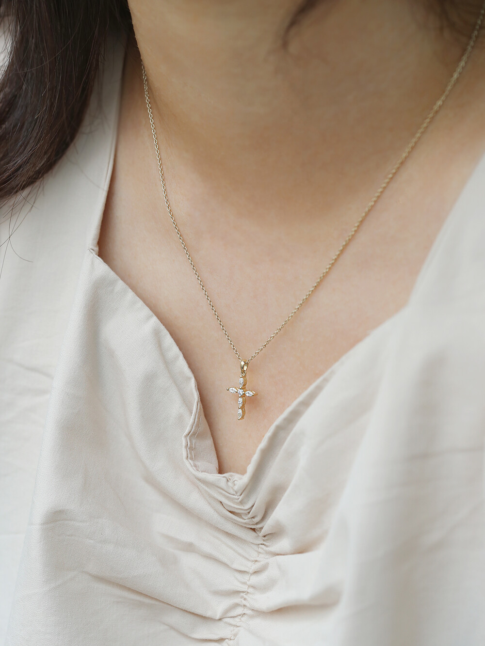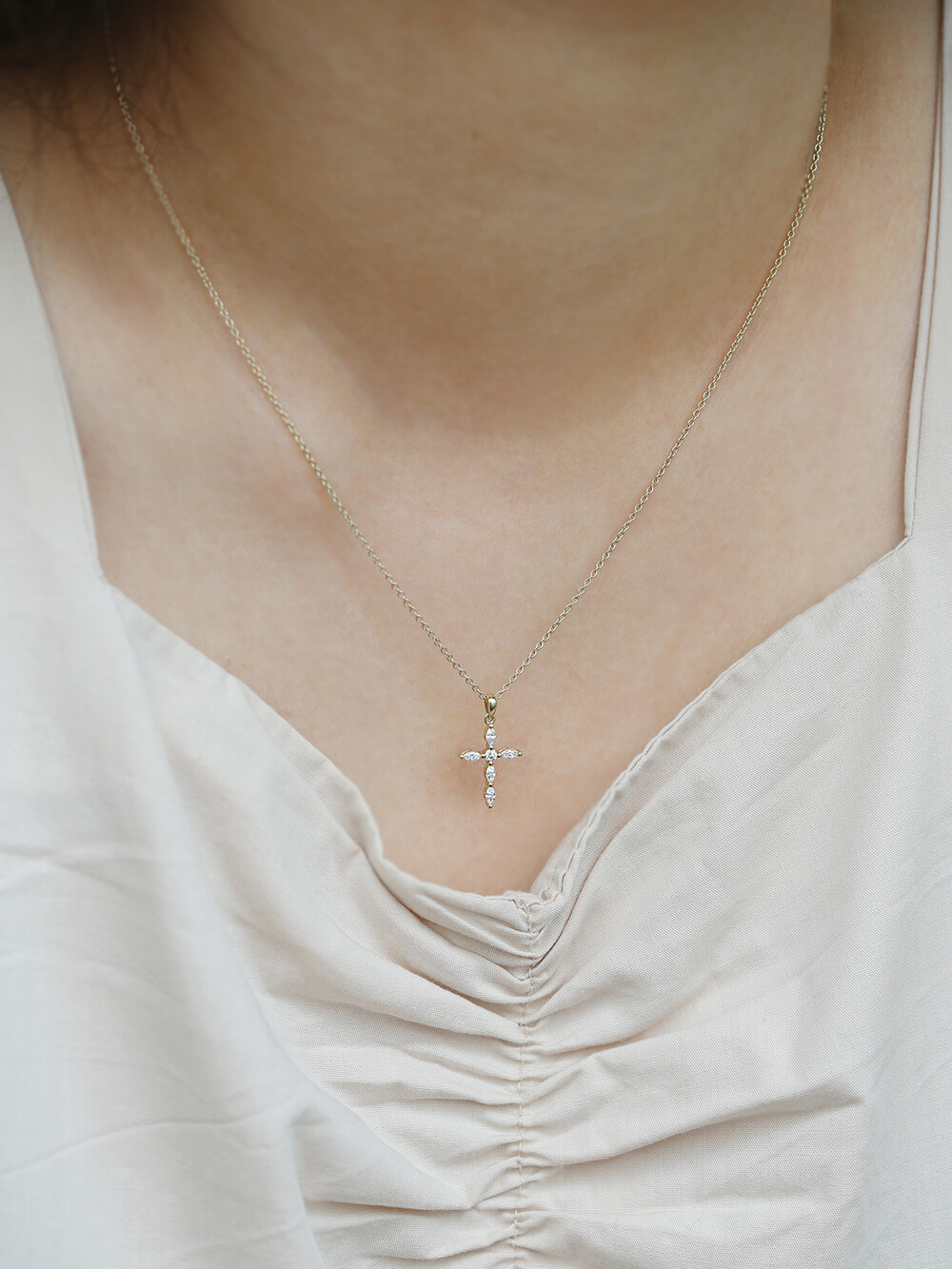 마퀴즈컷 다이아몬드를 활용한 십자가 디자인은