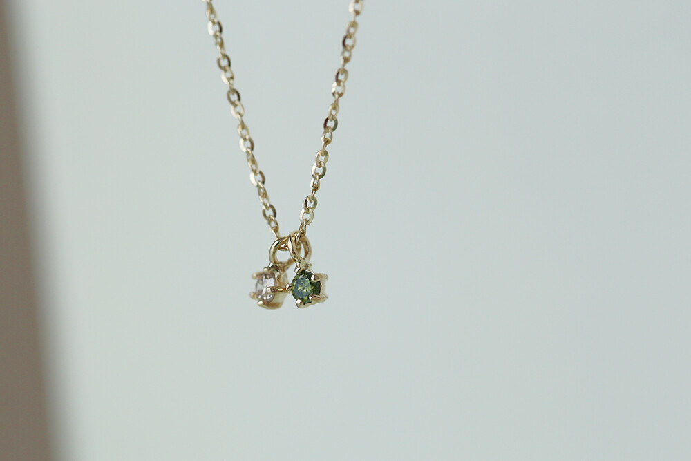 14k / 옐로골드 / 샘플 중량 : 1.41 g / 착용 사이즈 42-40cm / 꼬냑다이아몬드 + 그린다이아몬드 세팅