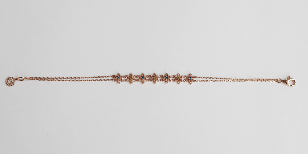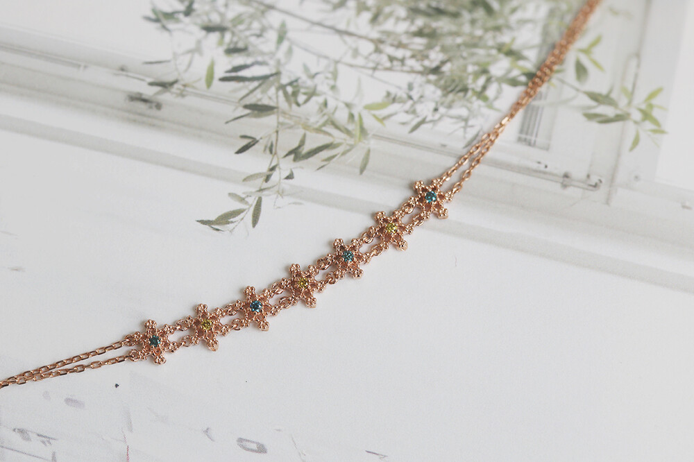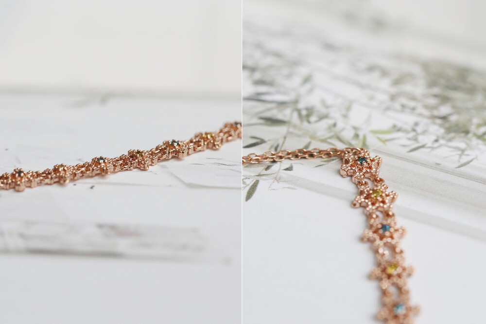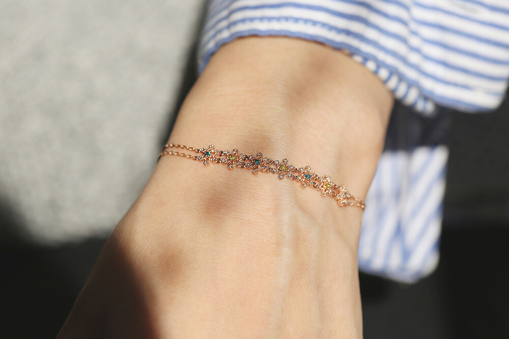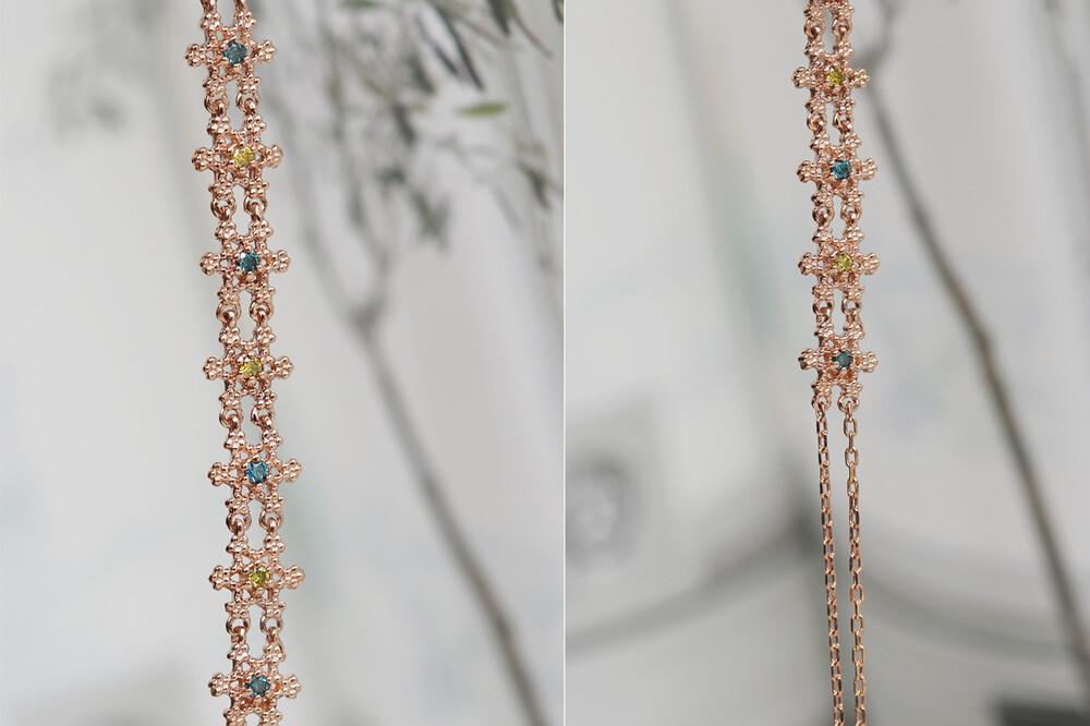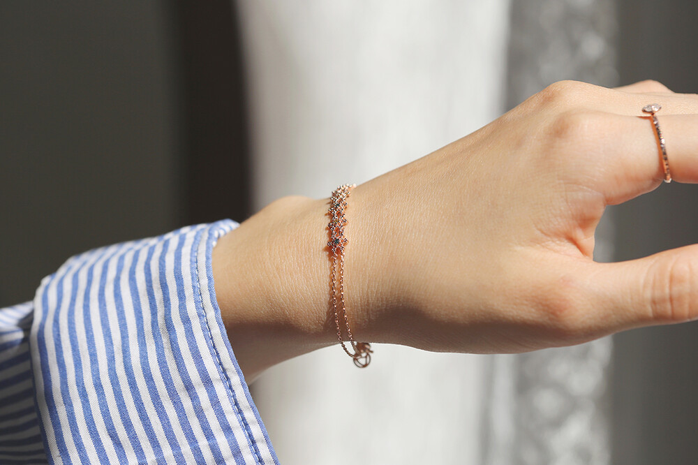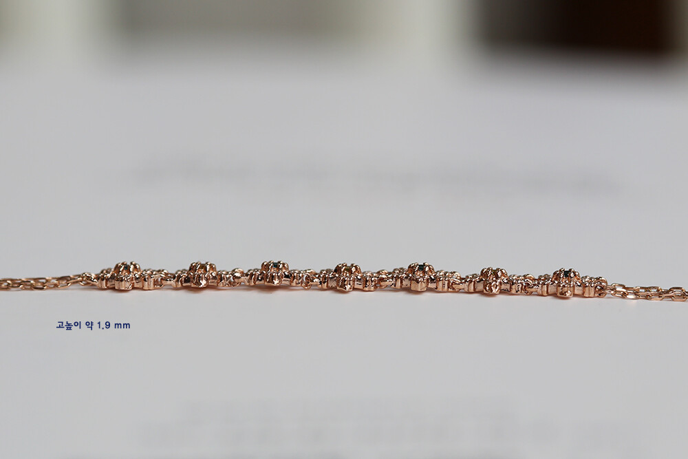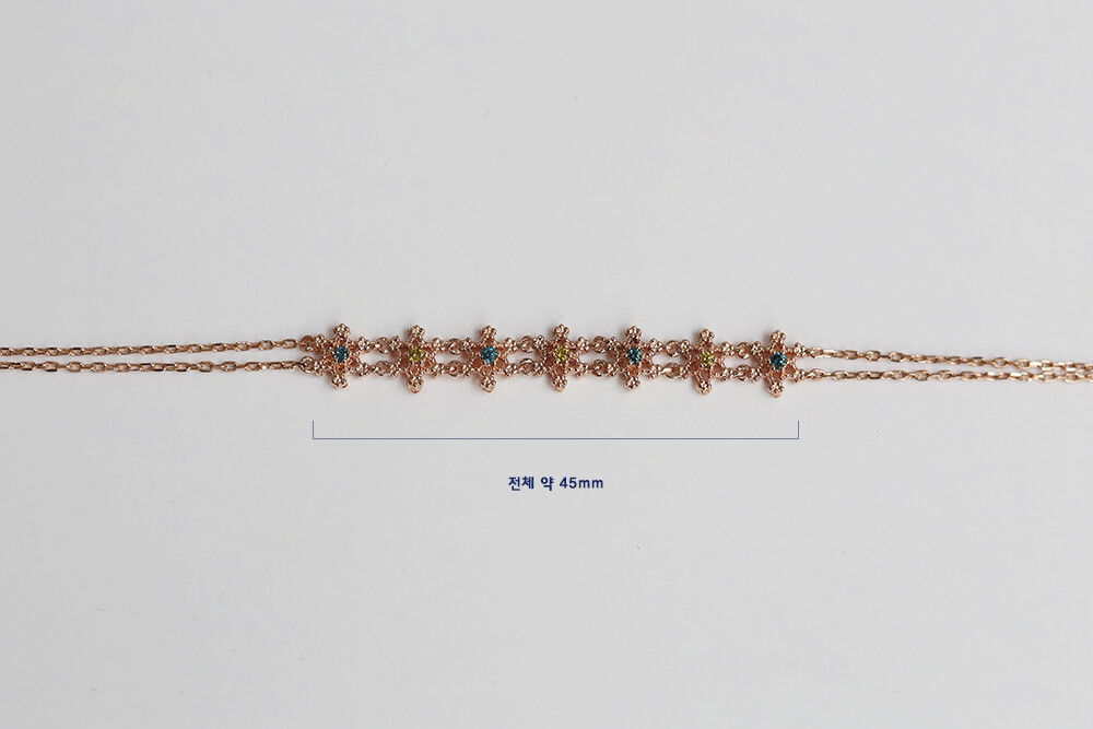14k / 핑크골드 / 모델 착용사이즈 16cm / 샘플 중량 : 2.70 g(14k 기준) / 컬러다이아몬드세팅