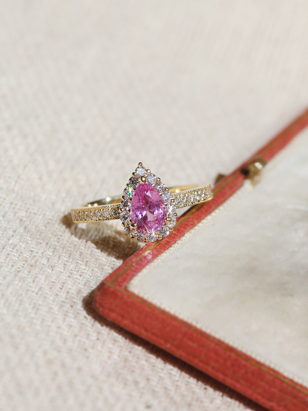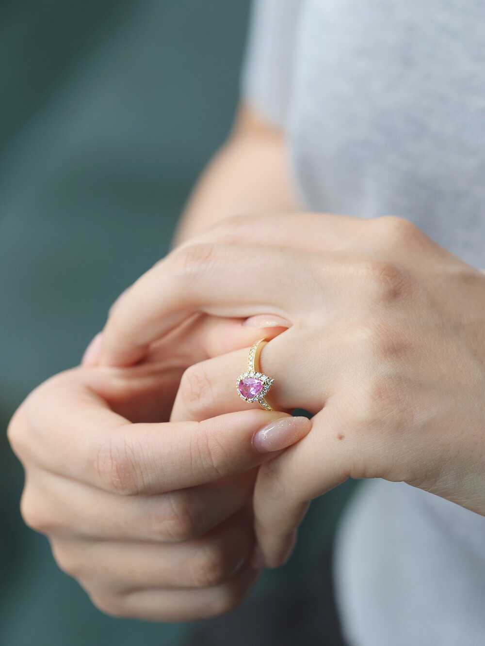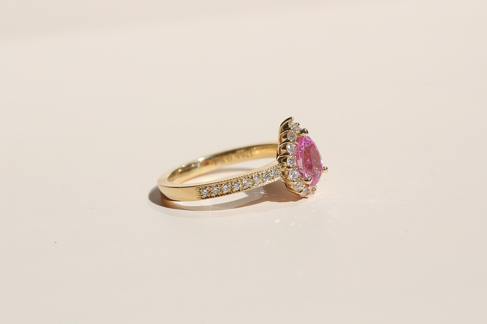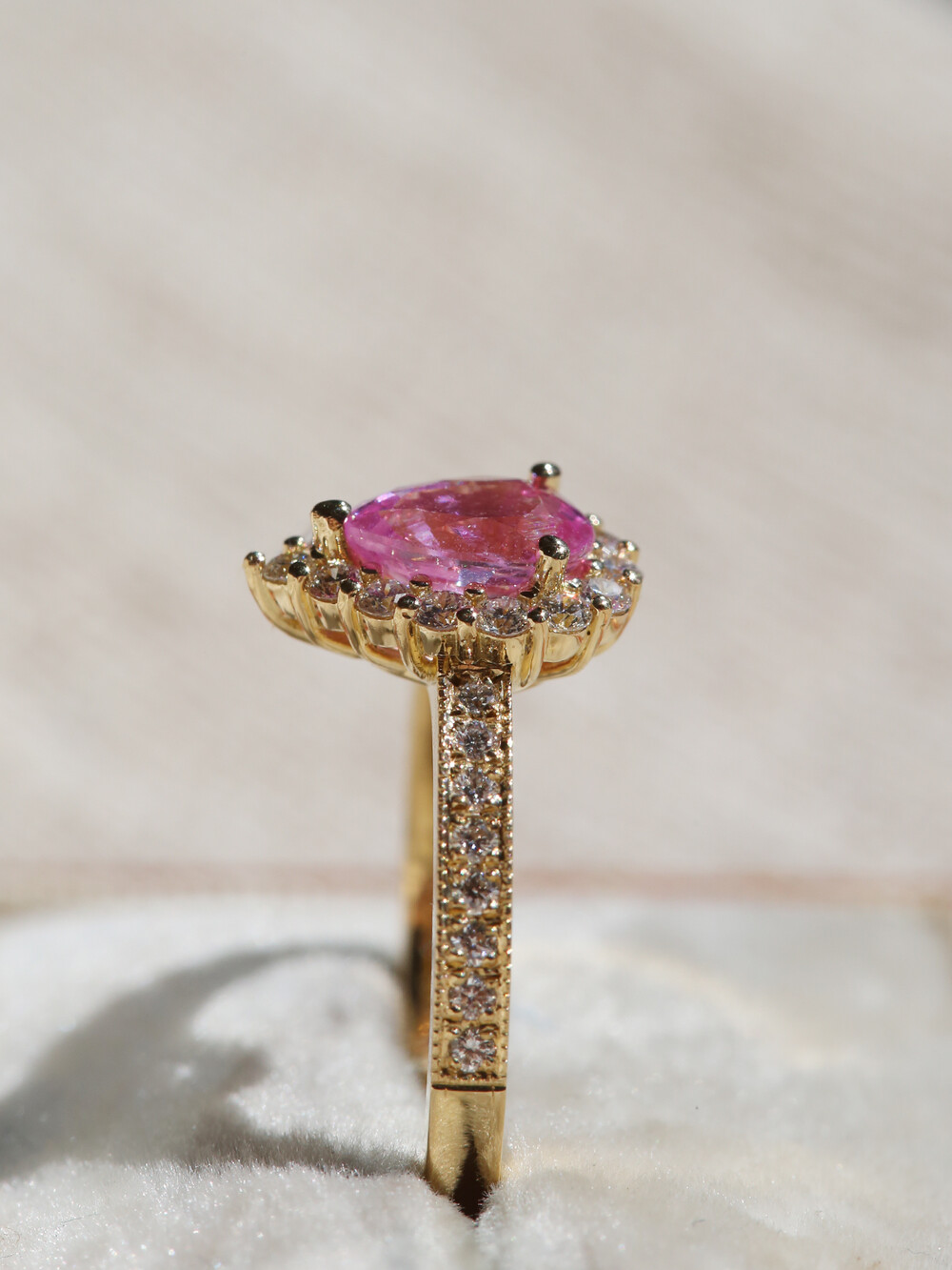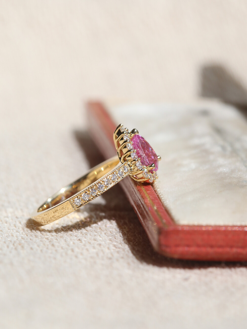 사랑스러운 핑크사파이어가 이 반지의 큰 매력이지만