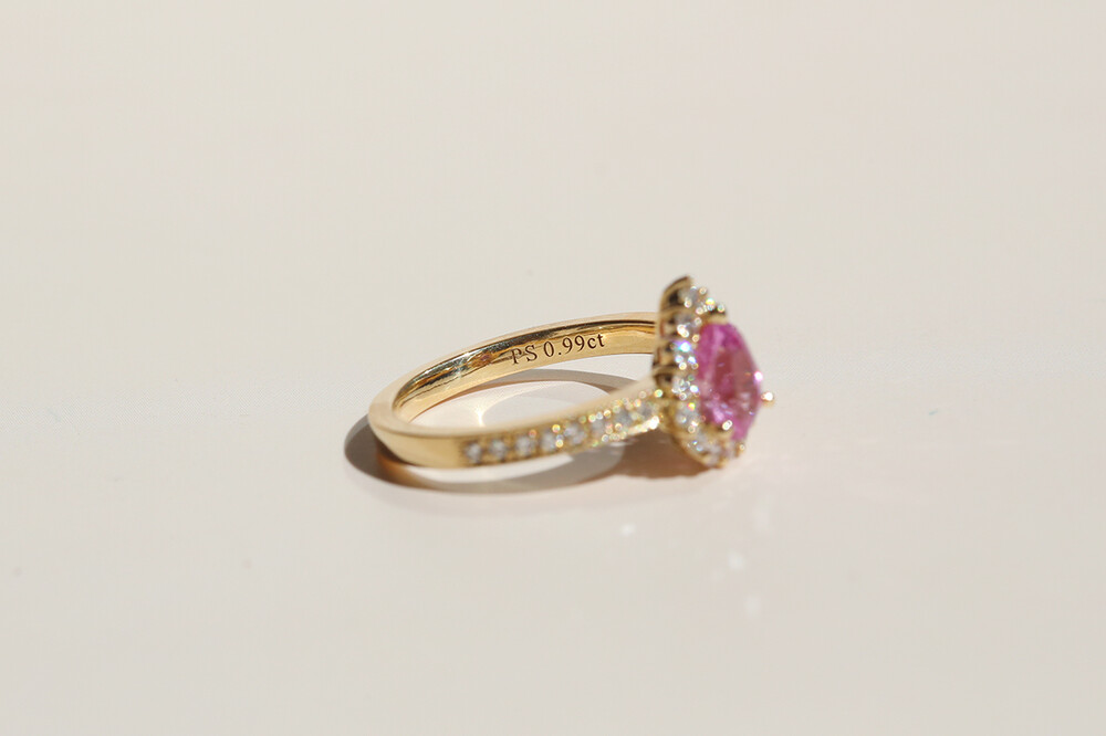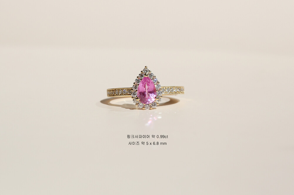 세팅된 메인 핑크사파이어는 0.99ct으로
