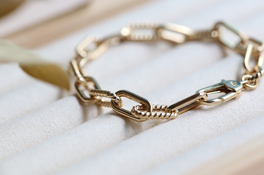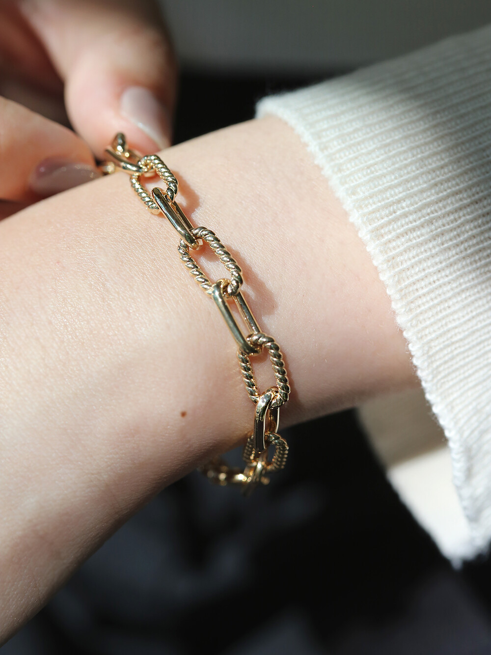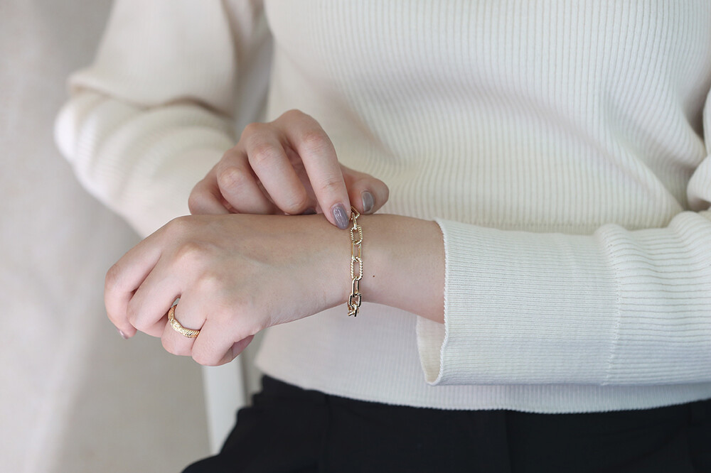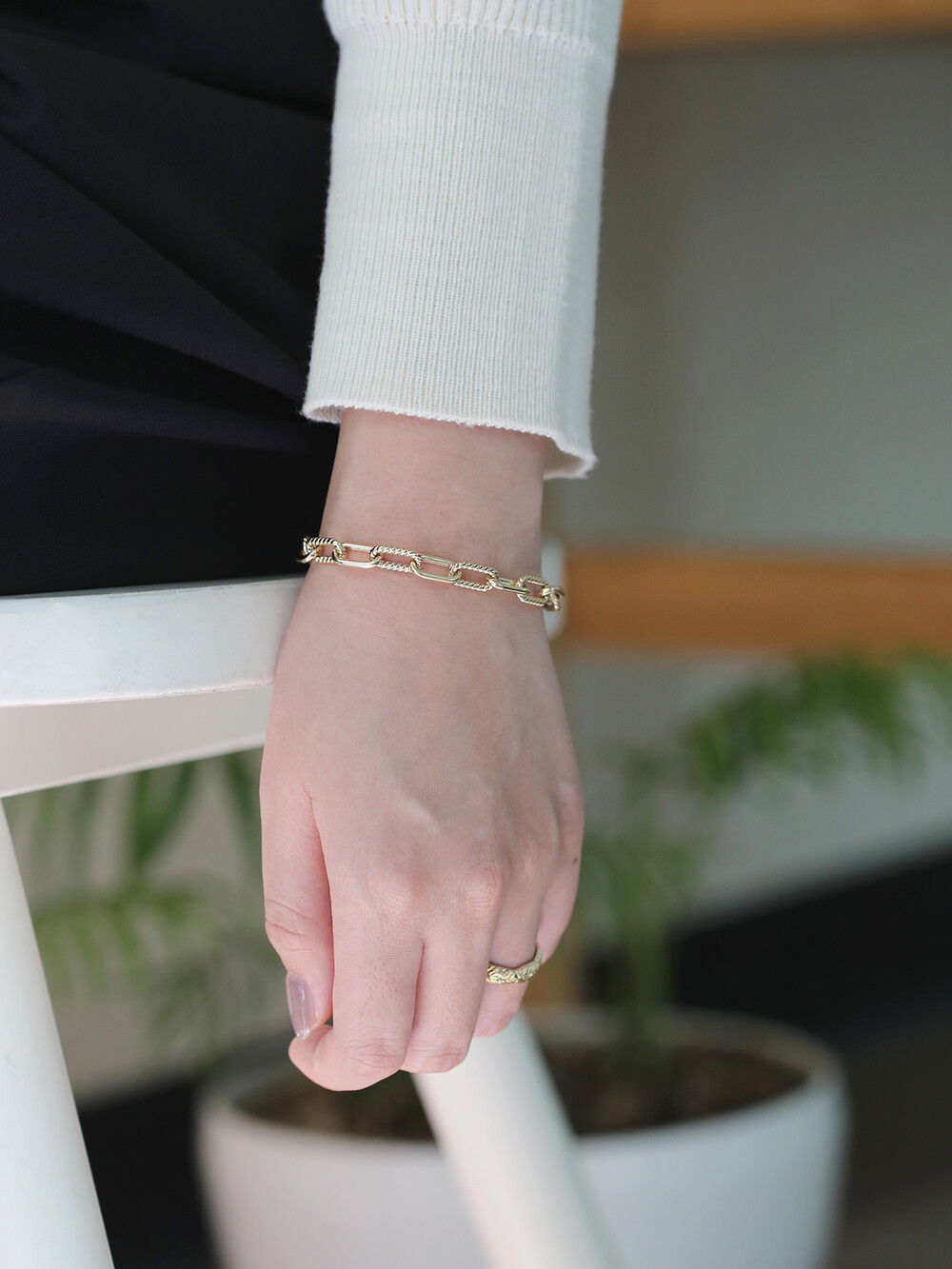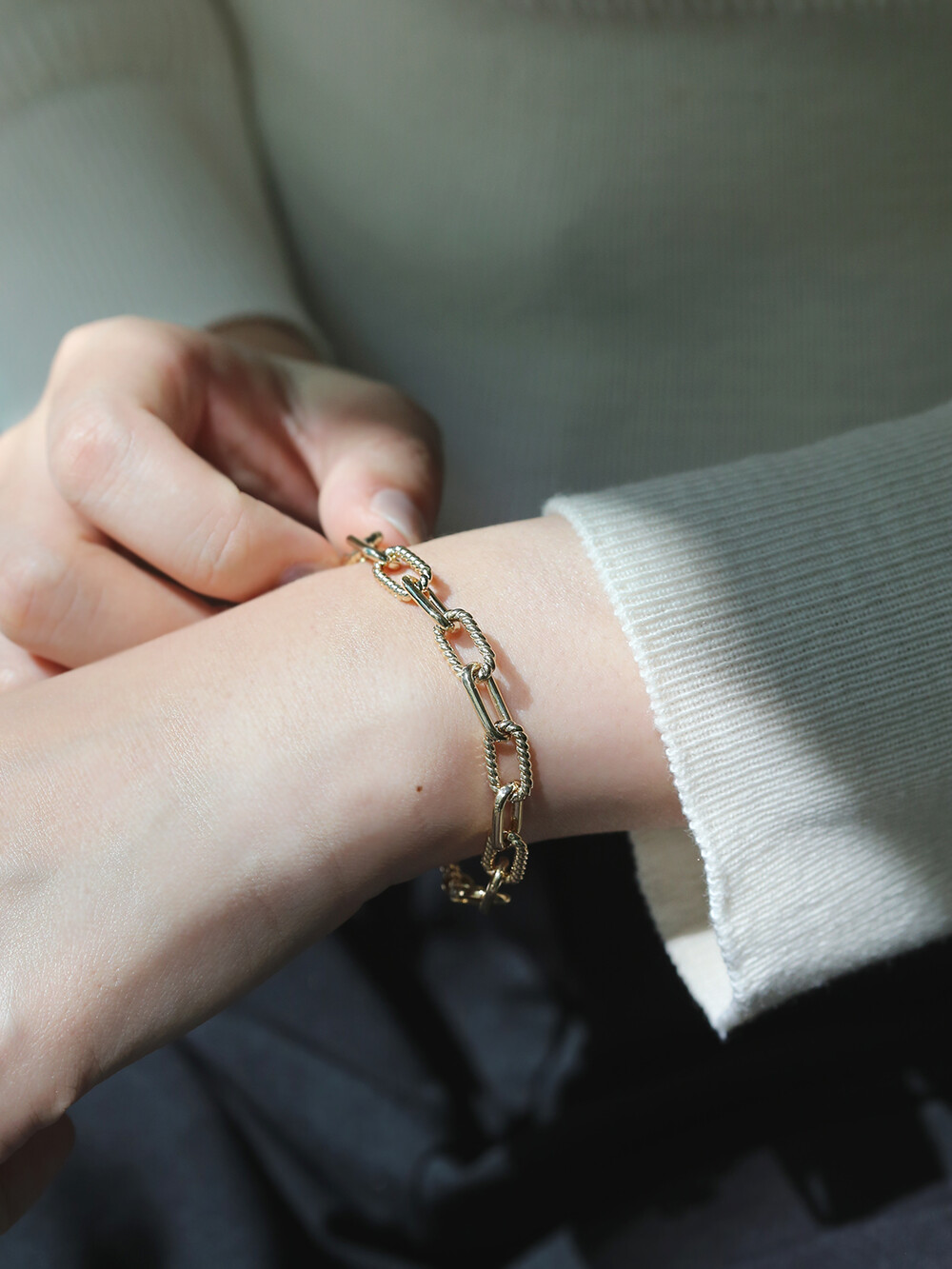 도톰한 체인으로 연결된 팔찌를 소개해드립니다