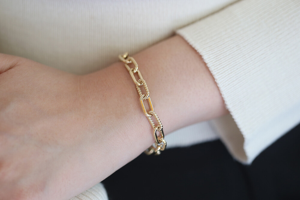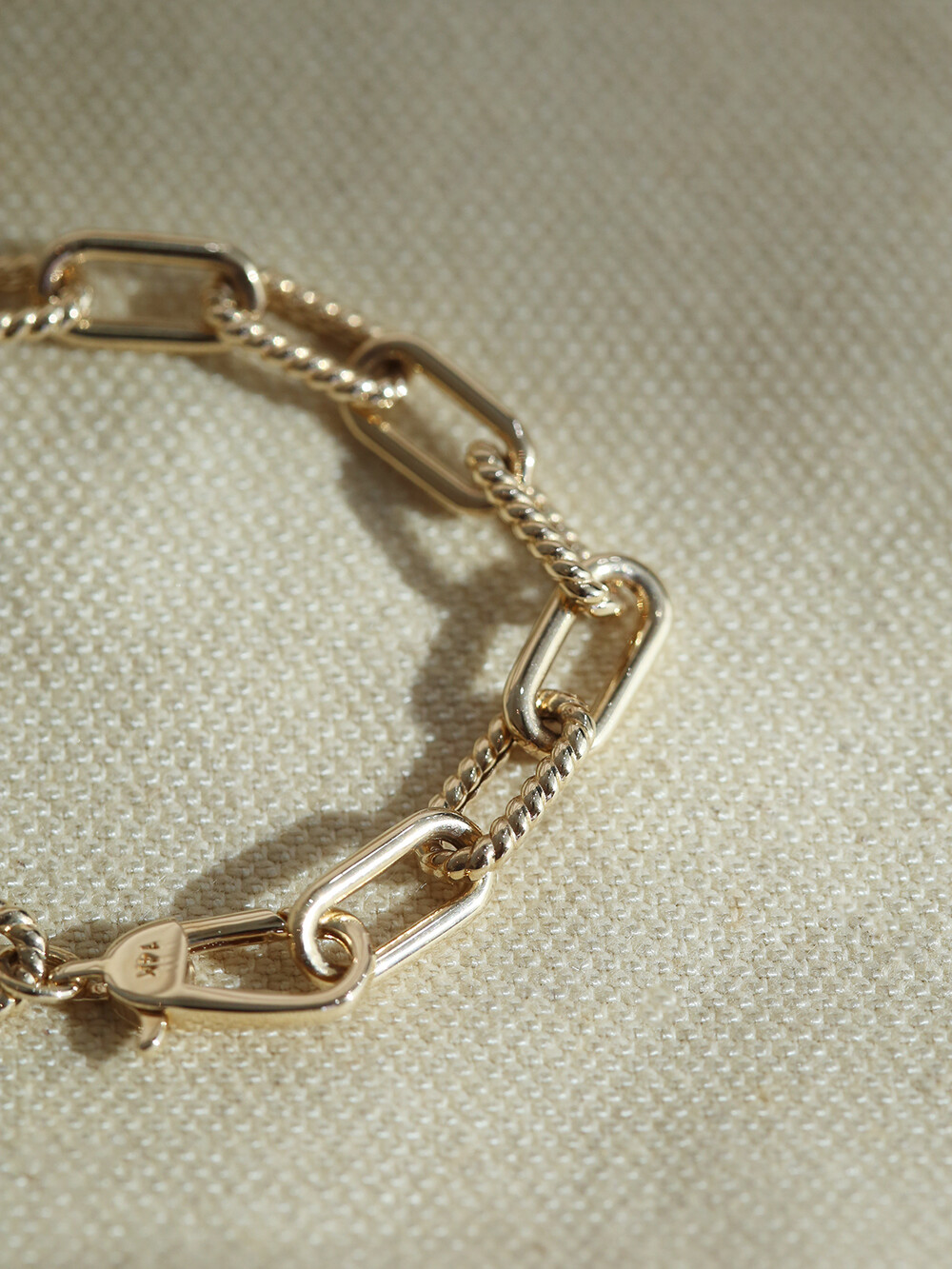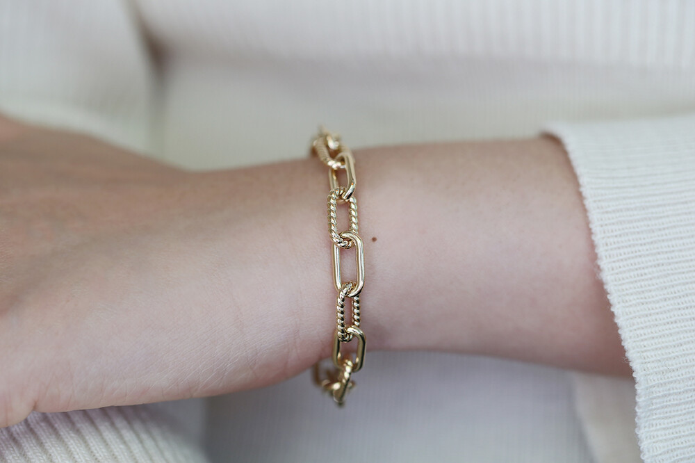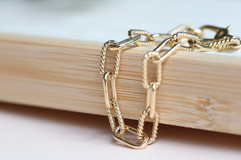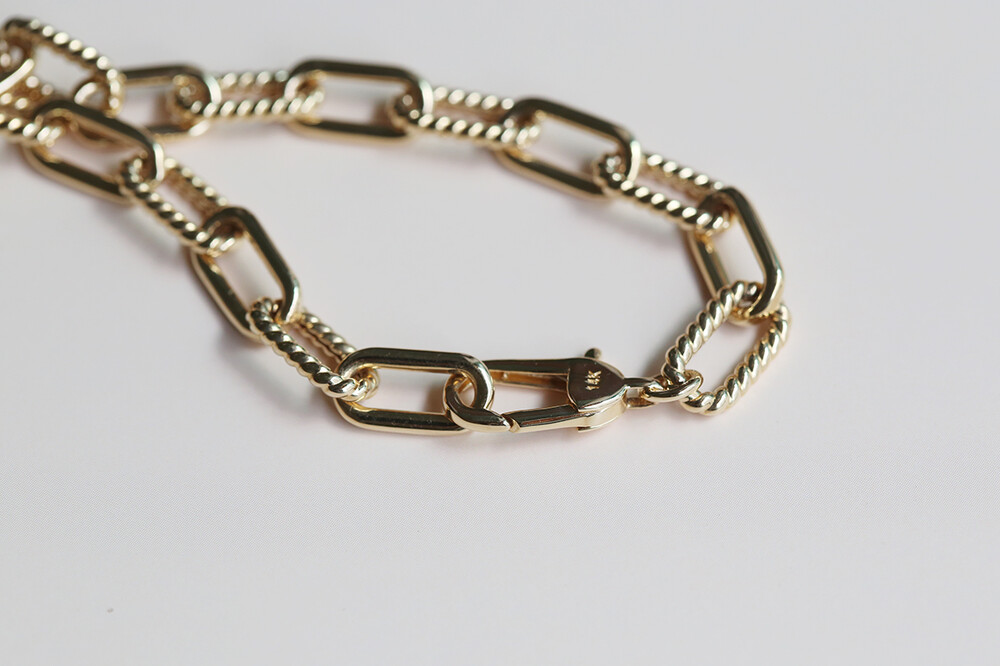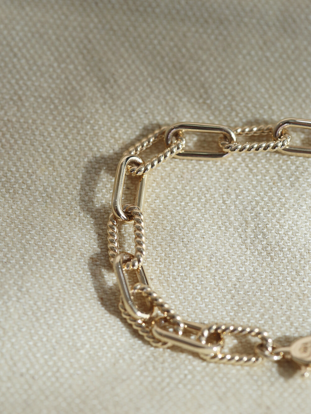 도톰한 체인으로 연결된 팔찌를 소개해드립니다