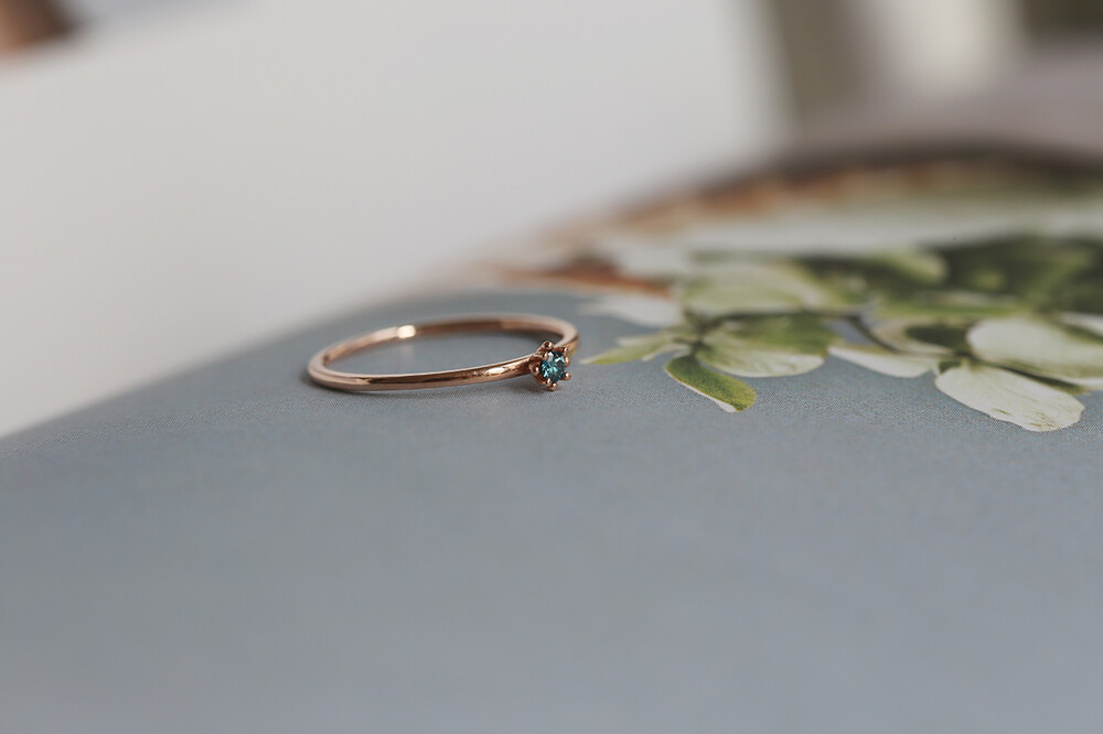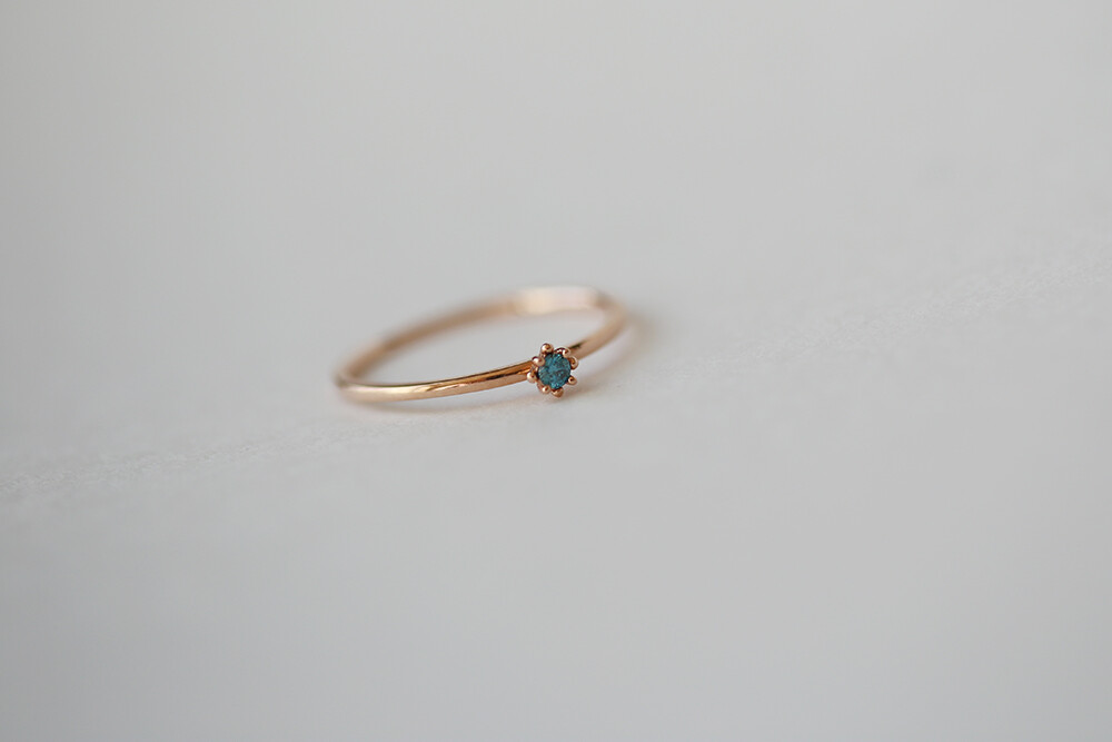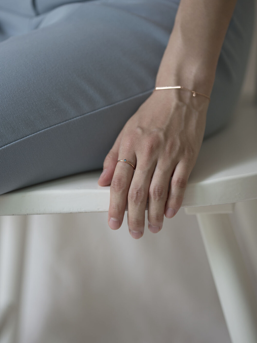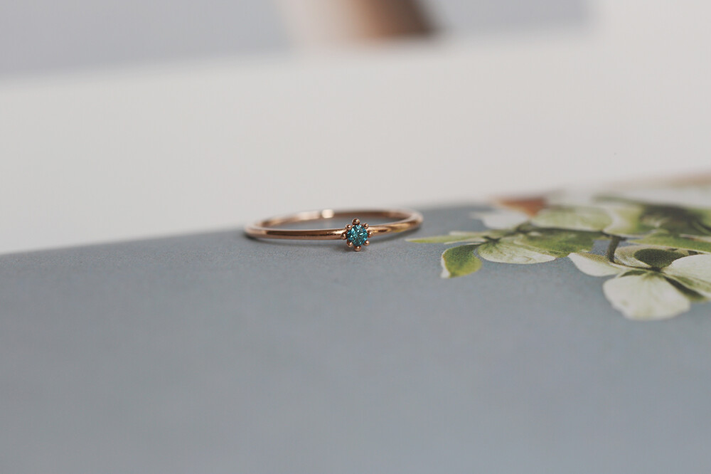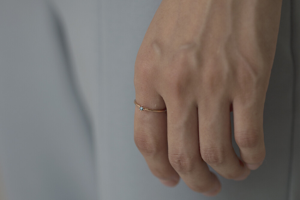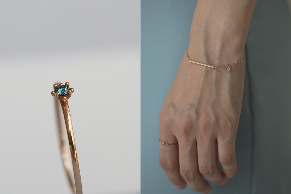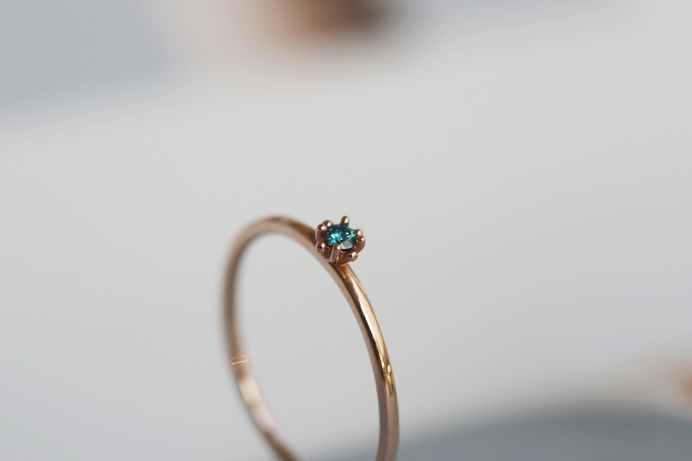 14k / 핑크골드 / 모델 착용사이즈 9호 / 샘플 중량 : 0.71 g (14k 기준) / 블루다이아몬드 세팅