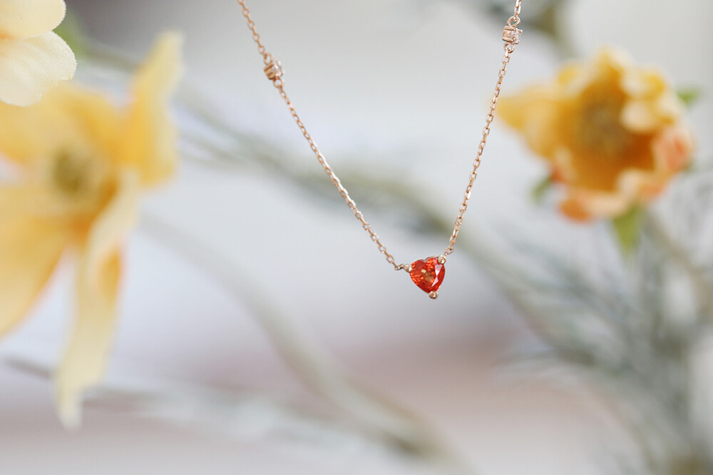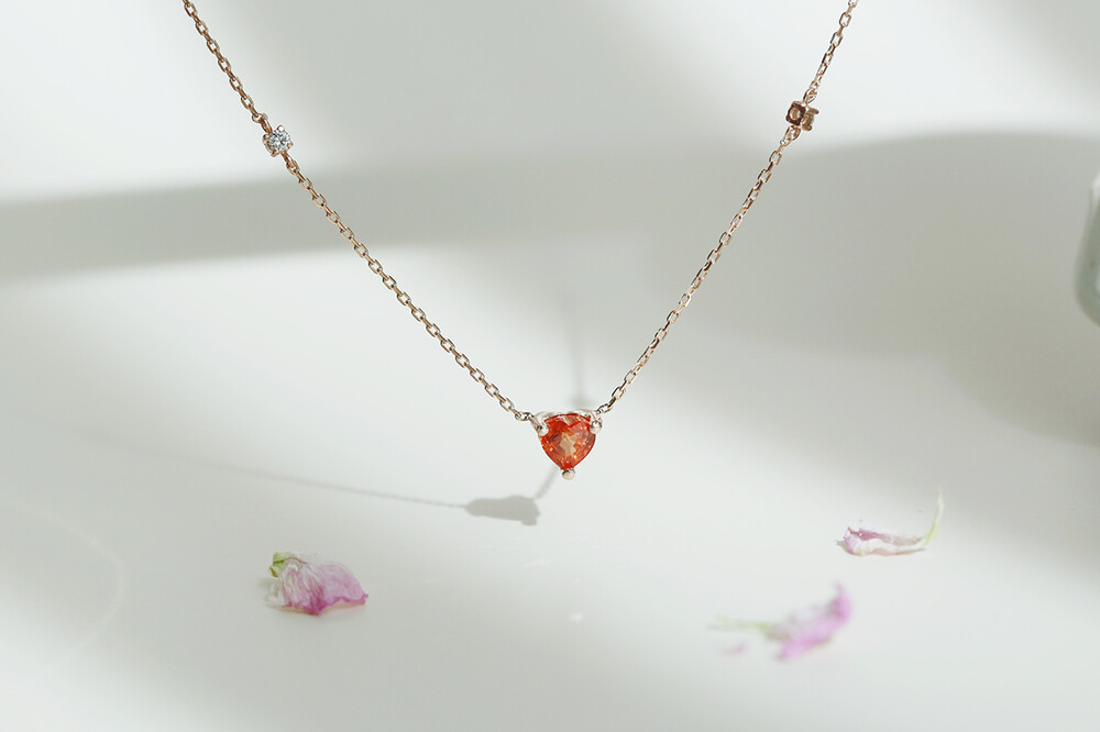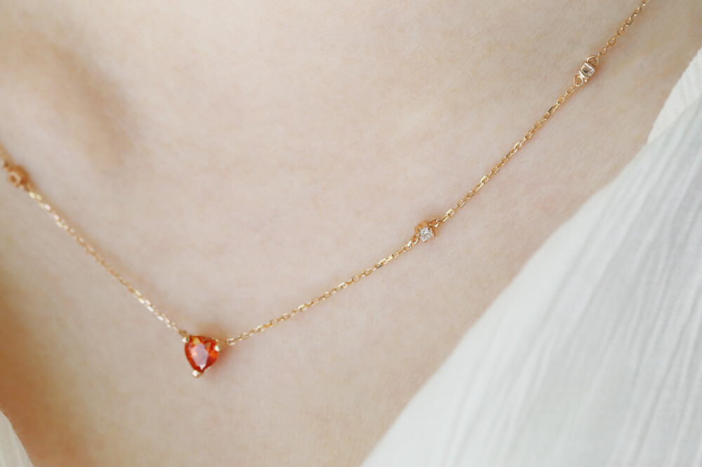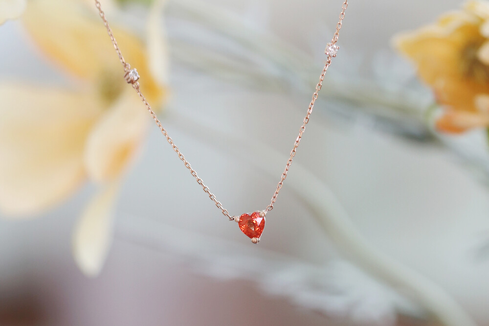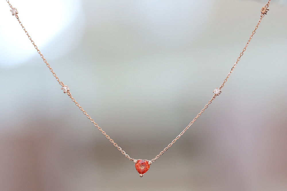 sophia heartcut orange sapphire dia necklace