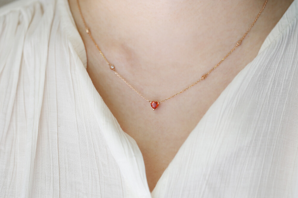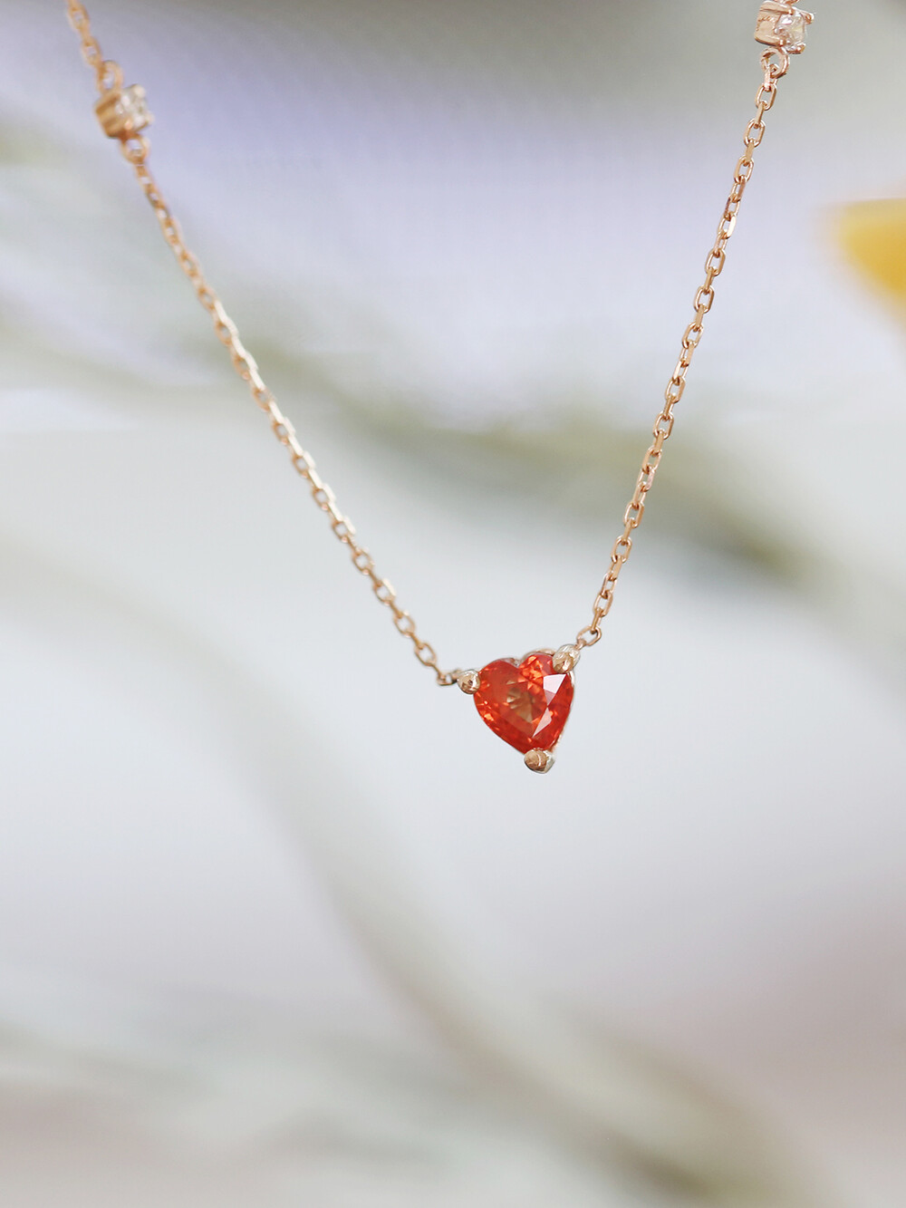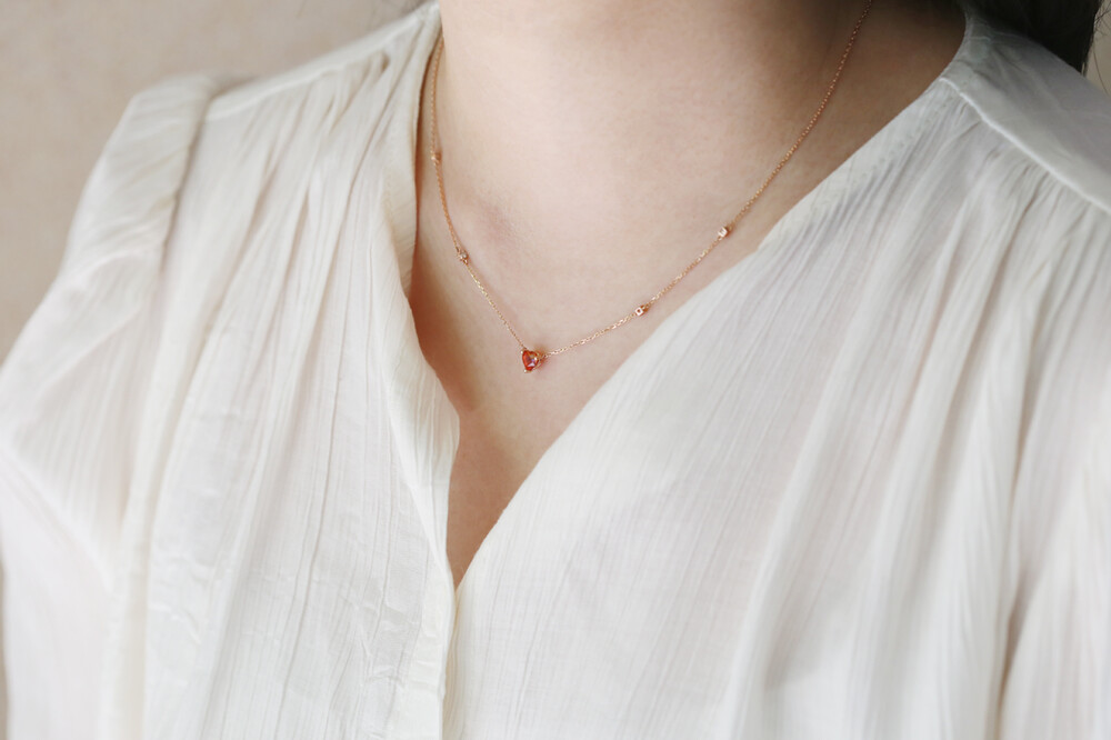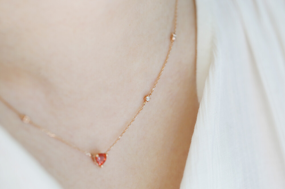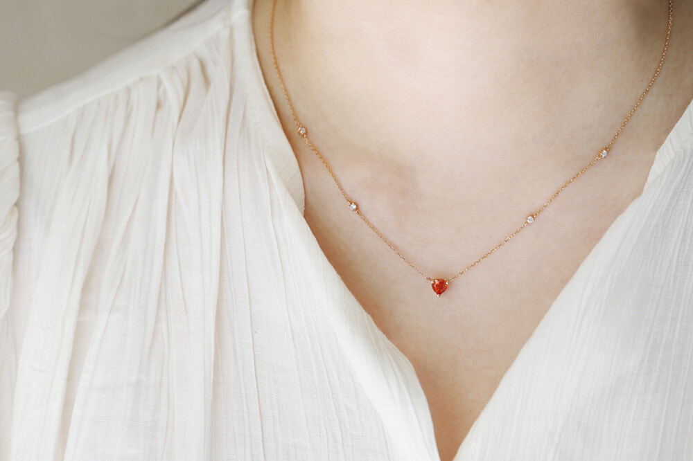 sophia heartcut orange sapphire dia necklace